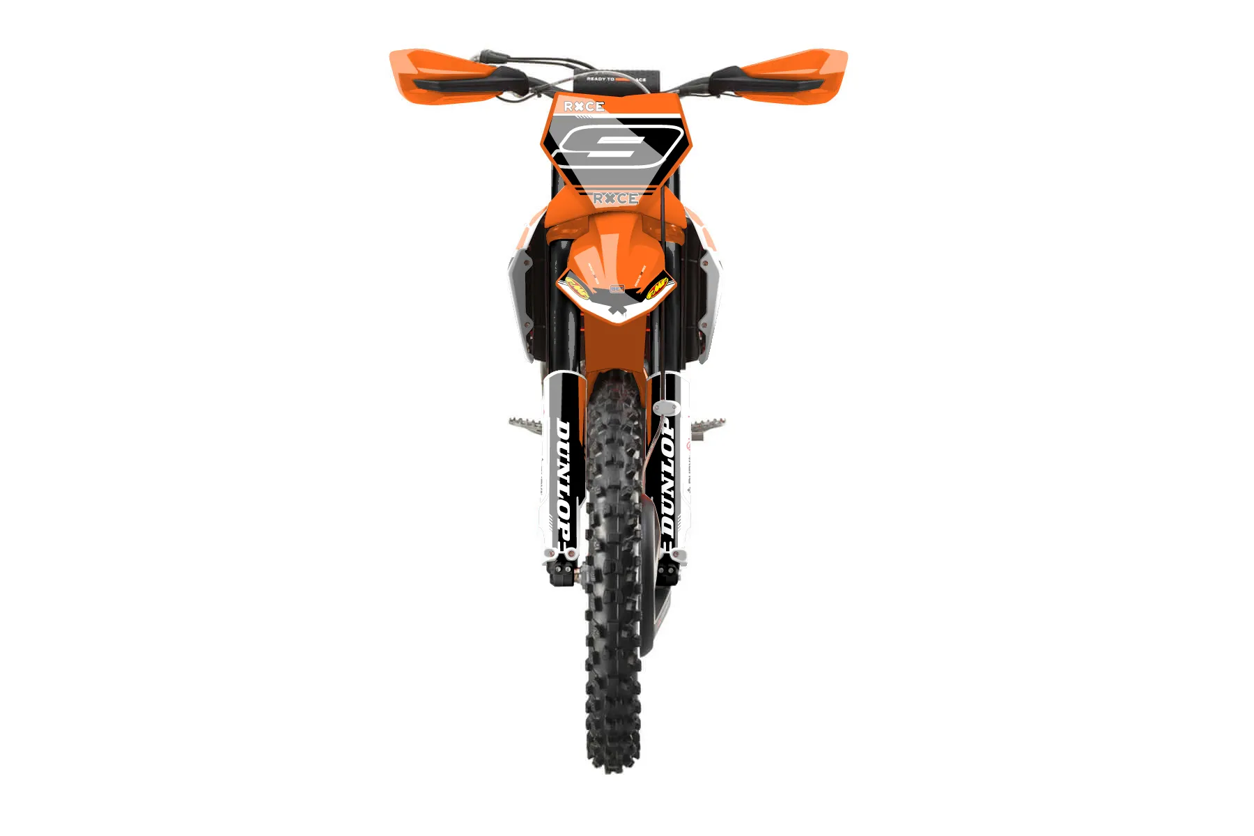 «Superb» — готовый комплект графики серии Untucked для KTM Offroad Graphic Kit KTM XC-F 250 2023. В комплекте: графика на бак и боковые облицовки, крылья (переднее и заднее), передний щиток, номерные таблички, защита вилки. Материал: ПВХ-винил 80 мкр с холодной ламинацией 300 мкр, общая толщина 380 мкр; покрытие глянцевое или матовое на выбор. Устойчив к UV-излучению, воде, бензину и мойке высокого давления. Клей акриловый на сольвентной основе — постоянный, для гибких пластиков. На простых поверхностях монтируется без нагрева; для сложных изгибов рекомендуем фен. Этот пресет можно заказать как есть или взять за основу в конструкторе: поменять цвета, добавить стартовый номер и свой бренд. Производство — 3–5 рабочих дней, доставка по России СДЭКом или Почтой, по СНГ — курьерскими службами.
