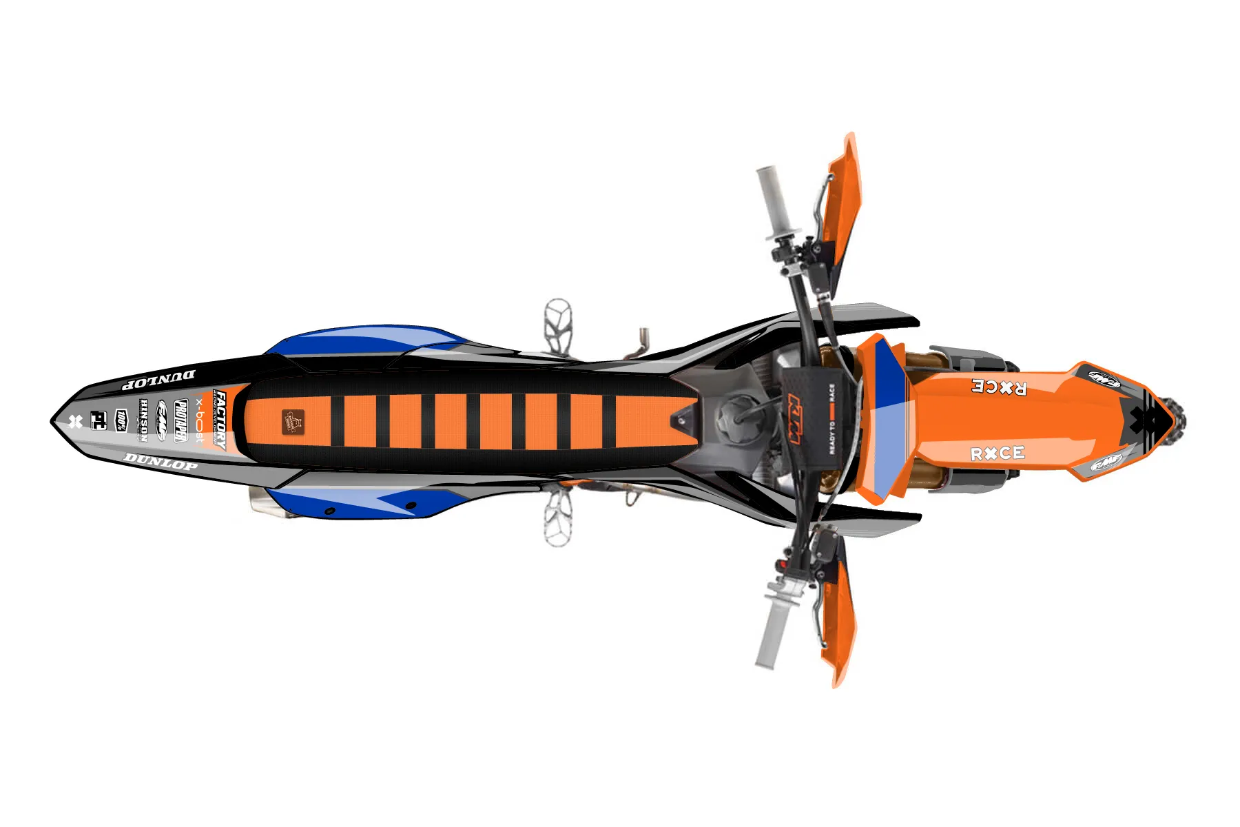 «Ultimate» — готовый комплект графики серии Untucked для KTM Offroad Graphic Kit KTM XC-F 250 2023. В комплекте: графика на бак и боковые облицовки, крылья (переднее и заднее), передний щиток, номерные таблички, защита вилки. Материал: ПВХ-винил 80 мкр с холодной ламинацией 300 мкр, общая толщина 380 мкр; покрытие глянцевое или матовое на выбор. Устойчив к UV-излучению, воде, бензину и мойке высокого давления. Клей акриловый на сольвентной основе — постоянный, для гибких пластиков. На простых поверхностях монтируется без нагрева; для сложных изгибов рекомендуем фен. Этот пресет можно заказать как есть или взять за основу в конструкторе: поменять цвета, добавить стартовый номер и свой бренд. Производство — 3–5 рабочих дней, доставка по России СДЭКом или Почтой, по СНГ — курьерскими службами.