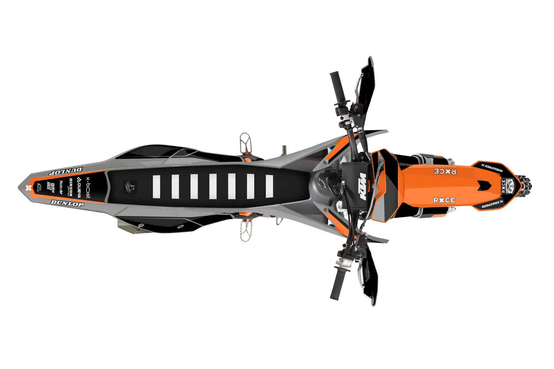 «Global» — готовый комплект графики серии Flow для KTM Offroad Graphic Kit KTM XC-F 350 2016. В комплекте: графика на бак и боковые облицовки, крылья (переднее и заднее), передний щиток, номерные таблички, защита вилки. Материал: ПВХ-винил 80 мкр с холодной ламинацией 300 мкр, общая толщина 380 мкр; покрытие глянцевое или матовое на выбор. Устойчив к UV-излучению, воде, бензину и мойке высокого давления. Клей акриловый на сольвентной основе — постоянный, для гибких пластиков. На простых поверхностях монтируется без нагрева; для сложных изгибов рекомендуем фен. Этот пресет можно заказать как есть или взять за основу в конструкторе: поменять цвета, добавить стартовый номер и свой бренд. Производство — 3–5 рабочих дней, доставка по России СДЭКом или Почтой, по СНГ — курьерскими службами.