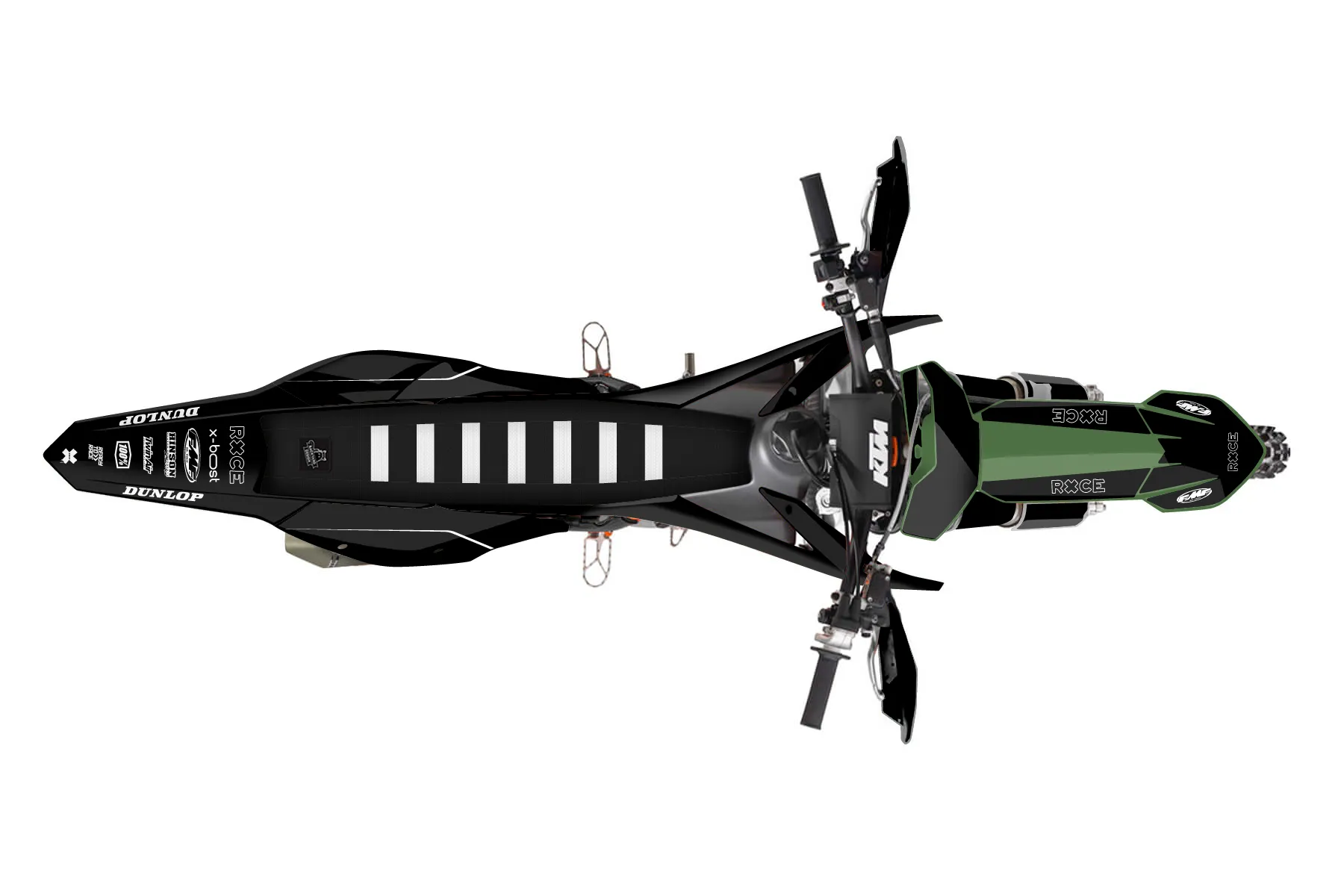 «Thrive» — готовый комплект графики серии Flow для KTM Offroad Graphic Kit KTM XC-F 350 2016. В комплекте: графика на бак и боковые облицовки, крылья (переднее и заднее), передний щиток, номерные таблички, защита вилки. Материал: ПВХ-винил 80 мкр с холодной ламинацией 300 мкр, общая толщина 380 мкр; покрытие глянцевое или матовое на выбор. Устойчив к UV-излучению, воде, бензину и мойке высокого давления. Клей акриловый на сольвентной основе — постоянный, для гибких пластиков. На простых поверхностях монтируется без нагрева; для сложных изгибов рекомендуем фен. Этот пресет можно заказать как есть или взять за основу в конструкторе: поменять цвета, добавить стартовый номер и свой бренд. Производство — 3–5 рабочих дней, доставка по России СДЭКом или Почтой, по СНГ — курьерскими службами.