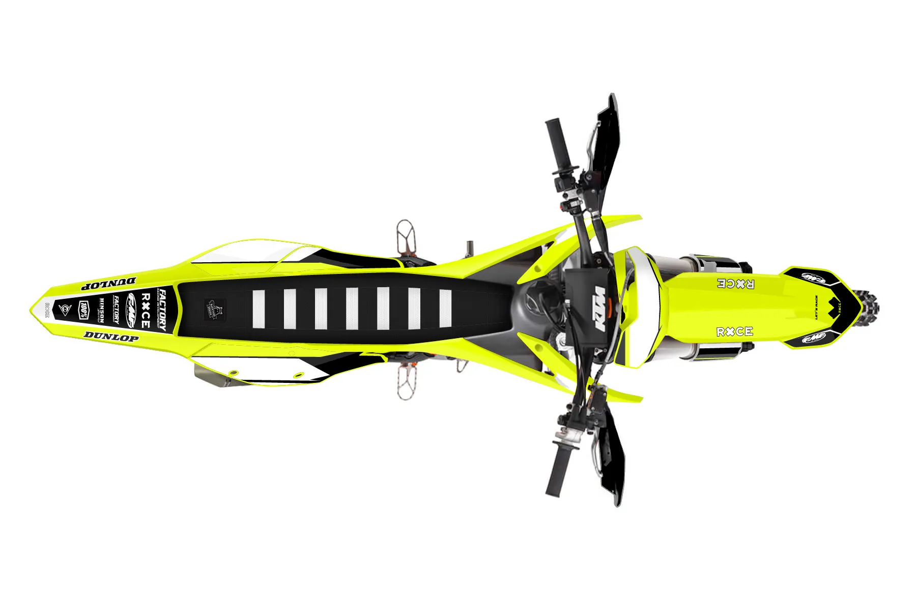 «Bright Neon» — готовый комплект графики серии Maverick для KTM Offroad Graphic Kit KTM XC-F 350 2016. В комплекте: графика на бак и боковые облицовки, крылья (переднее и заднее), передний щиток, номерные таблички, защита вилки. Материал: ПВХ-винил 80 мкр с холодной ламинацией 300 мкр, общая толщина 380 мкр; покрытие глянцевое или матовое на выбор. Устойчив к UV-излучению, воде, бензину и мойке высокого давления. Клей акриловый на сольвентной основе — постоянный, для гибких пластиков. На простых поверхностях монтируется без нагрева; для сложных изгибов рекомендуем фен. Этот пресет можно заказать как есть или взять за основу в конструкторе: поменять цвета, добавить стартовый номер и свой бренд. Производство — 3–5 рабочих дней, доставка по России СДЭКом или Почтой, по СНГ — курьерскими службами.