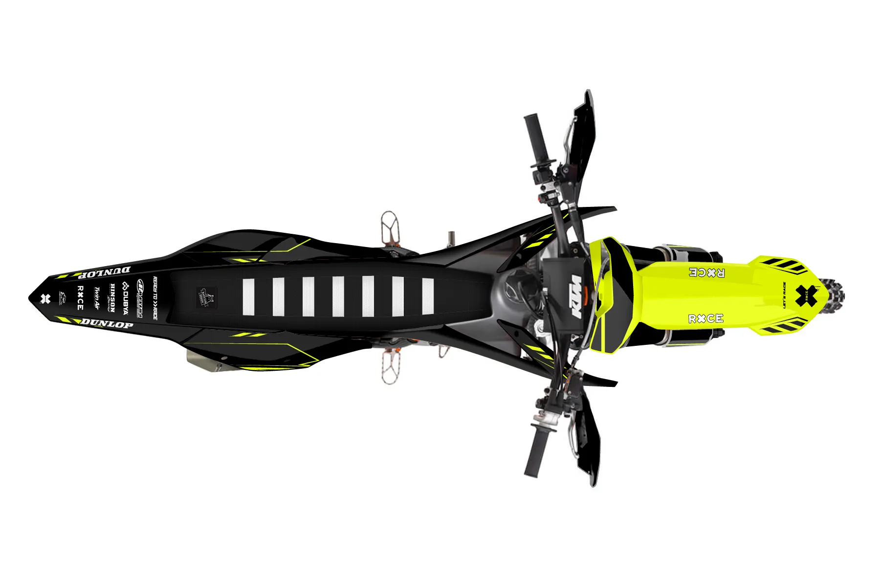 «Kitted Neon» — готовый комплект графики серии Maverick для KTM Offroad Graphic Kit KTM XC-F 350 2016. В комплекте: графика на бак и боковые облицовки, крылья (переднее и заднее), передний щиток, номерные таблички, защита вилки. Материал: ПВХ-винил 80 мкр с холодной ламинацией 300 мкр, общая толщина 380 мкр; покрытие глянцевое или матовое на выбор. Устойчив к UV-излучению, воде, бензину и мойке высокого давления. Клей акриловый на сольвентной основе — постоянный, для гибких пластиков. На простых поверхностях монтируется без нагрева; для сложных изгибов рекомендуем фен. Этот пресет можно заказать как есть или взять за основу в конструкторе: поменять цвета, добавить стартовый номер и свой бренд. Производство — 3–5 рабочих дней, доставка по России СДЭКом или Почтой, по СНГ — курьерскими службами.