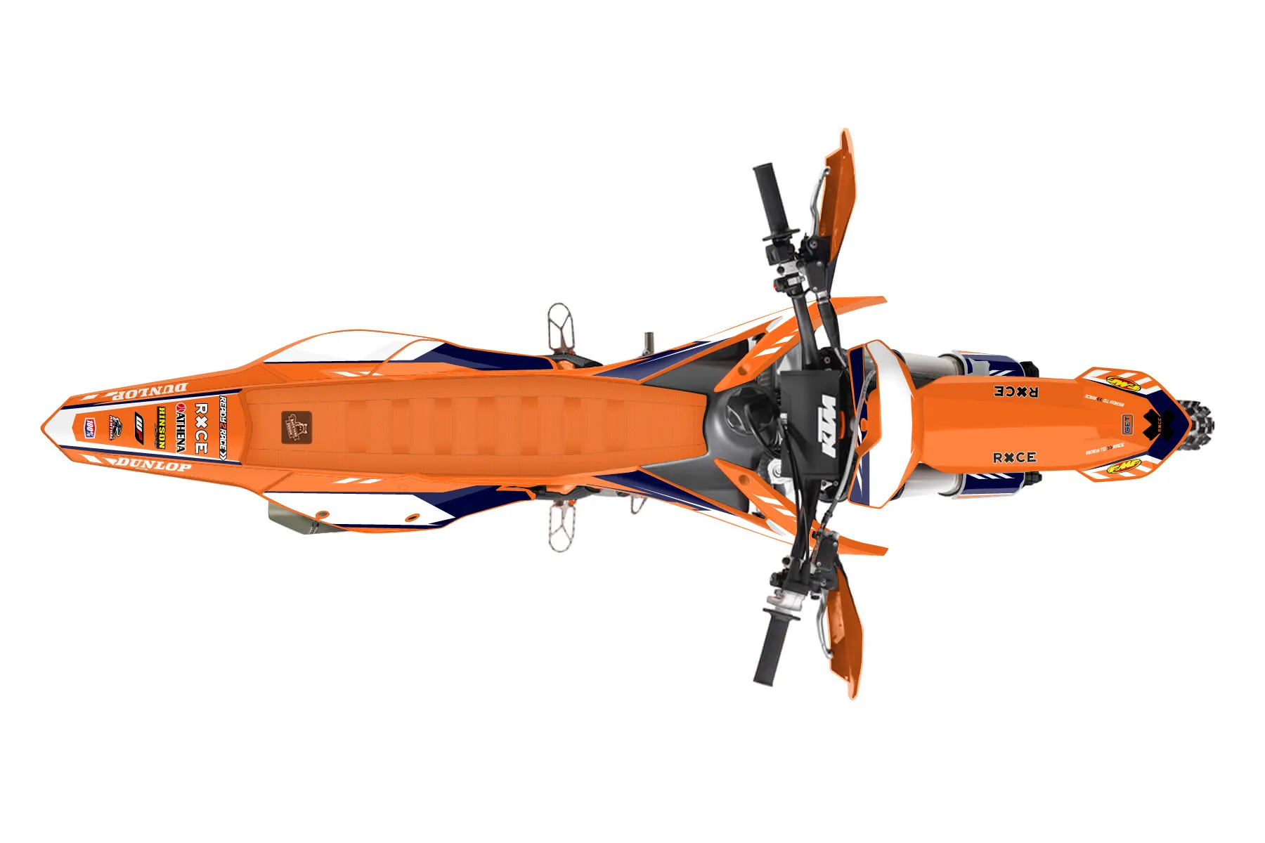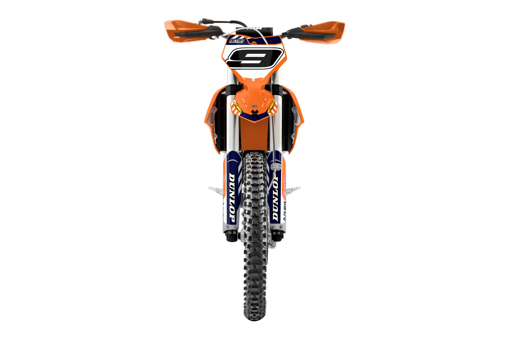 «Swift» — готовый комплект графики серии Maverick для KTM Offroad Graphic Kit KTM XC-F 350 2016. В комплекте: графика на бак и боковые облицовки, крылья (переднее и заднее), передний щиток, номерные таблички, защита вилки. Материал: ПВХ-винил 80 мкр с холодной ламинацией 300 мкр, общая толщина 380 мкр; покрытие глянцевое или матовое на выбор. Устойчив к UV-излучению, воде, бензину и мойке высокого давления. Клей акриловый на сольвентной основе — постоянный, для гибких пластиков. На простых поверхностях монтируется без нагрева; для сложных изгибов рекомендуем фен. Этот пресет можно заказать как есть или взять за основу в конструкторе: поменять цвета, добавить стартовый номер и свой бренд. Производство — 3–5 рабочих дней, доставка по России СДЭКом или Почтой, по СНГ — курьерскими службами.