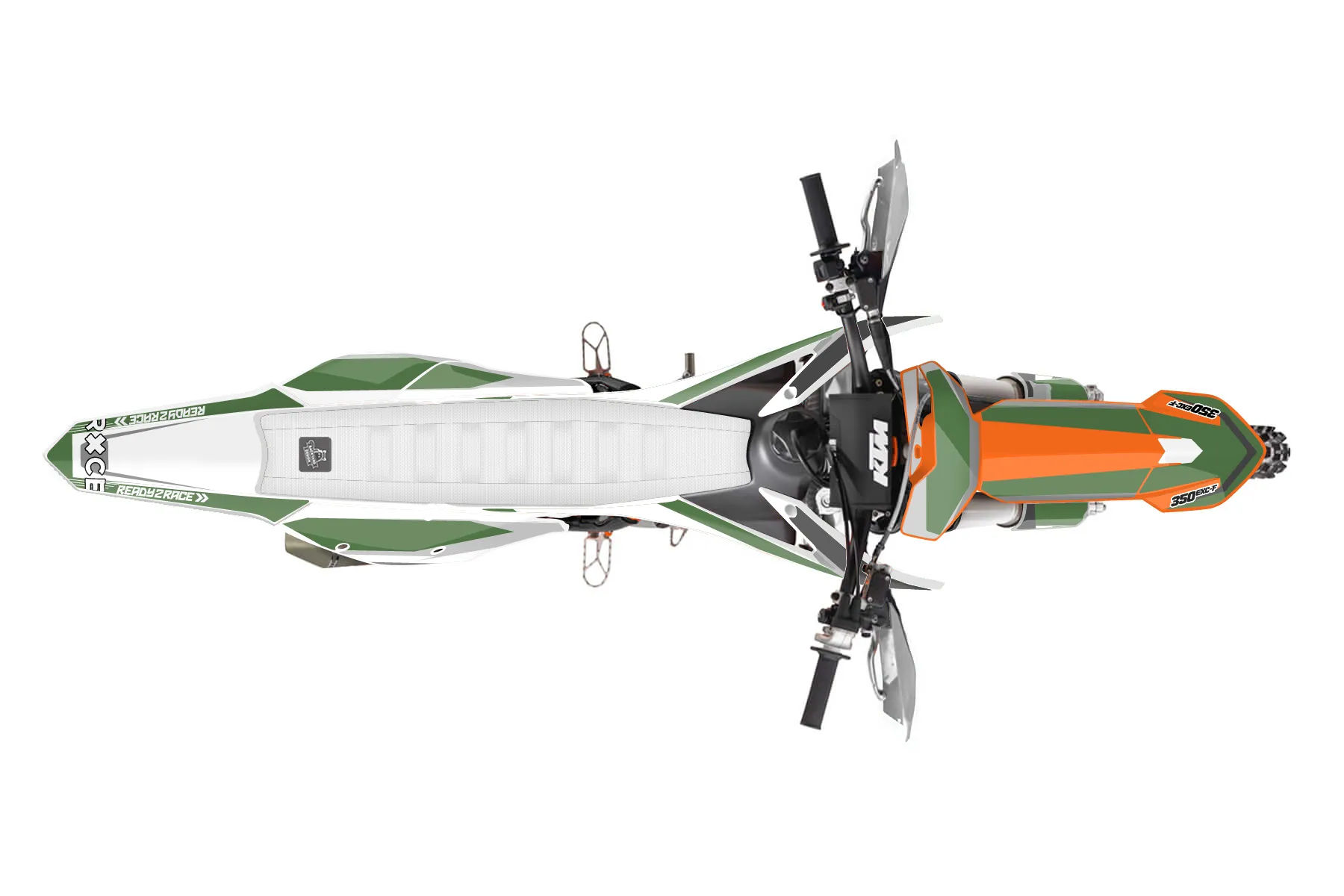 «Forage Property» — готовый комплект графики серии Staple для KTM Offroad Graphic Kit KTM XC-F 350 2016. В комплекте: графика на бак и боковые облицовки, крылья (переднее и заднее), передний щиток, номерные таблички, защита вилки. Материал: ПВХ-винил 80 мкр с холодной ламинацией 300 мкр, общая толщина 380 мкр; покрытие глянцевое или матовое на выбор. Устойчив к UV-излучению, воде, бензину и мойке высокого давления. Клей акриловый на сольвентной основе — постоянный, для гибких пластиков. На простых поверхностях монтируется без нагрева; для сложных изгибов рекомендуем фен. Этот пресет можно заказать как есть или взять за основу в конструкторе: поменять цвета, добавить стартовый номер и свой бренд. Производство — 3–5 рабочих дней, доставка по России СДЭКом или Почтой, по СНГ — курьерскими службами.