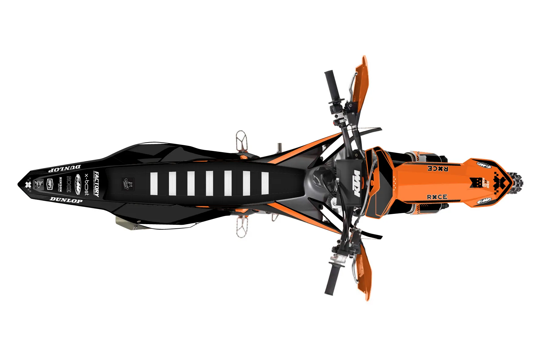«RacerX» — готовый комплект графики серии Staple для KTM Offroad Graphic Kit KTM XC-F 350 2016. В комплекте: графика на бак и боковые облицовки, крылья (переднее и заднее), передний щиток, номерные таблички, защита вилки. Материал: ПВХ-винил 80 мкр с холодной ламинацией 300 мкр, общая толщина 380 мкр; покрытие глянцевое или матовое на выбор. Устойчив к UV-излучению, воде, бензину и мойке высокого давления. Клей акриловый на сольвентной основе — постоянный, для гибких пластиков. На простых поверхностях монтируется без нагрева; для сложных изгибов рекомендуем фен. Этот пресет можно заказать как есть или взять за основу в конструкторе: поменять цвета, добавить стартовый номер и свой бренд. Производство — 3–5 рабочих дней, доставка по России СДЭКом или Почтой, по СНГ — курьерскими службами.