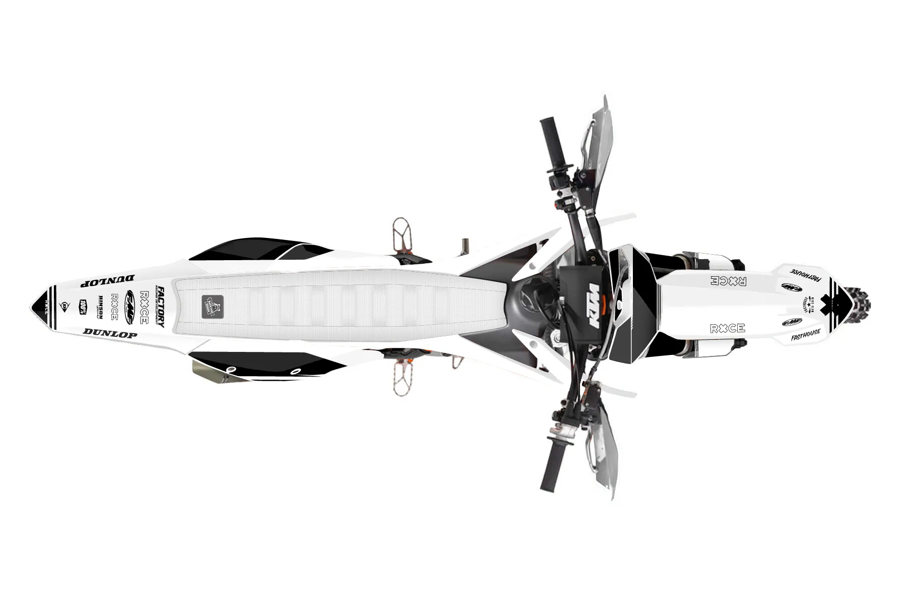 «DesignHouse» — готовый комплект графики серии Untucked для KTM Offroad Graphic Kit KTM XC-F 350 2016. В комплекте: графика на бак и боковые облицовки, крылья (переднее и заднее), передний щиток, номерные таблички, защита вилки. Материал: ПВХ-винил 80 мкр с холодной ламинацией 300 мкр, общая толщина 380 мкр; покрытие глянцевое или матовое на выбор. Устойчив к UV-излучению, воде, бензину и мойке высокого давления. Клей акриловый на сольвентной основе — постоянный, для гибких пластиков. На простых поверхностях монтируется без нагрева; для сложных изгибов рекомендуем фен. Этот пресет можно заказать как есть или взять за основу в конструкторе: поменять цвета, добавить стартовый номер и свой бренд. Производство — 3–5 рабочих дней, доставка по России СДЭКом или Почтой, по СНГ — курьерскими службами.