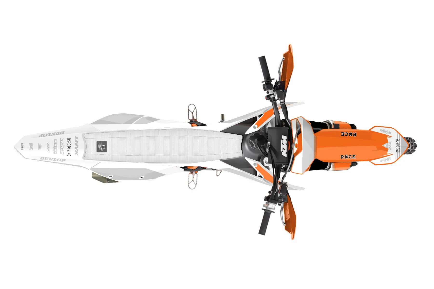 «Flying» — готовый комплект графики серии Untucked для KTM Offroad Graphic Kit KTM XC-F 350 2016. В комплекте: графика на бак и боковые облицовки, крылья (переднее и заднее), передний щиток, номерные таблички, защита вилки. Материал: ПВХ-винил 80 мкр с холодной ламинацией 300 мкр, общая толщина 380 мкр; покрытие глянцевое или матовое на выбор. Устойчив к UV-излучению, воде, бензину и мойке высокого давления. Клей акриловый на сольвентной основе — постоянный, для гибких пластиков. На простых поверхностях монтируется без нагрева; для сложных изгибов рекомендуем фен. Этот пресет можно заказать как есть или взять за основу в конструкторе: поменять цвета, добавить стартовый номер и свой бренд. Производство — 3–5 рабочих дней, доставка по России СДЭКом или Почтой, по СНГ — курьерскими службами.