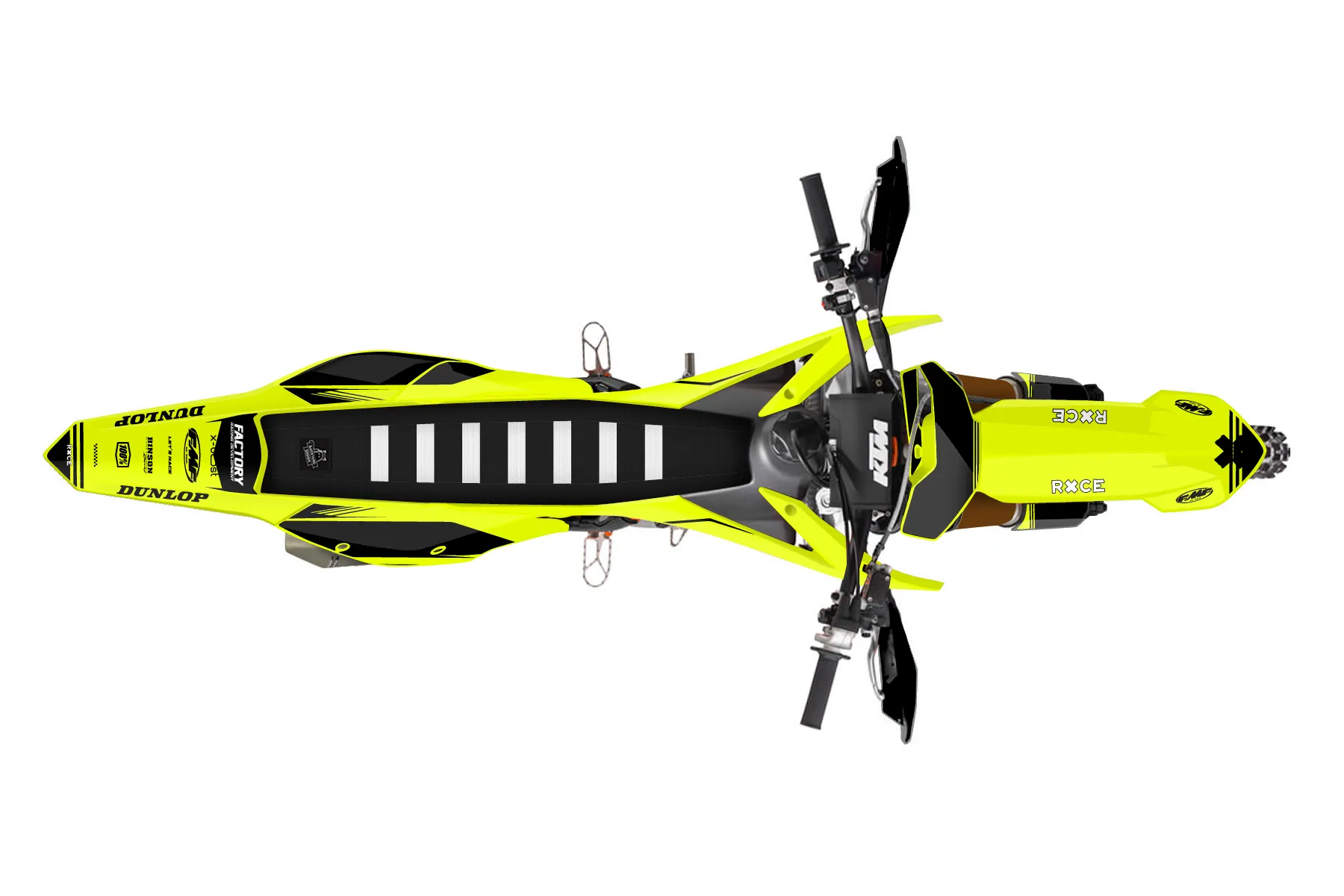 «Loose Neon» — готовый комплект графики серии Untucked для KTM Offroad Graphic Kit KTM XC-F 350 2016. В комплекте: графика на бак и боковые облицовки, крылья (переднее и заднее), передний щиток, номерные таблички, защита вилки. Материал: ПВХ-винил 80 мкр с холодной ламинацией 300 мкр, общая толщина 380 мкр; покрытие глянцевое или матовое на выбор. Устойчив к UV-излучению, воде, бензину и мойке высокого давления. Клей акриловый на сольвентной основе — постоянный, для гибких пластиков. На простых поверхностях монтируется без нагрева; для сложных изгибов рекомендуем фен. Этот пресет можно заказать как есть или взять за основу в конструкторе: поменять цвета, добавить стартовый номер и свой бренд. Производство — 3–5 рабочих дней, доставка по России СДЭКом или Почтой, по СНГ — курьерскими службами.