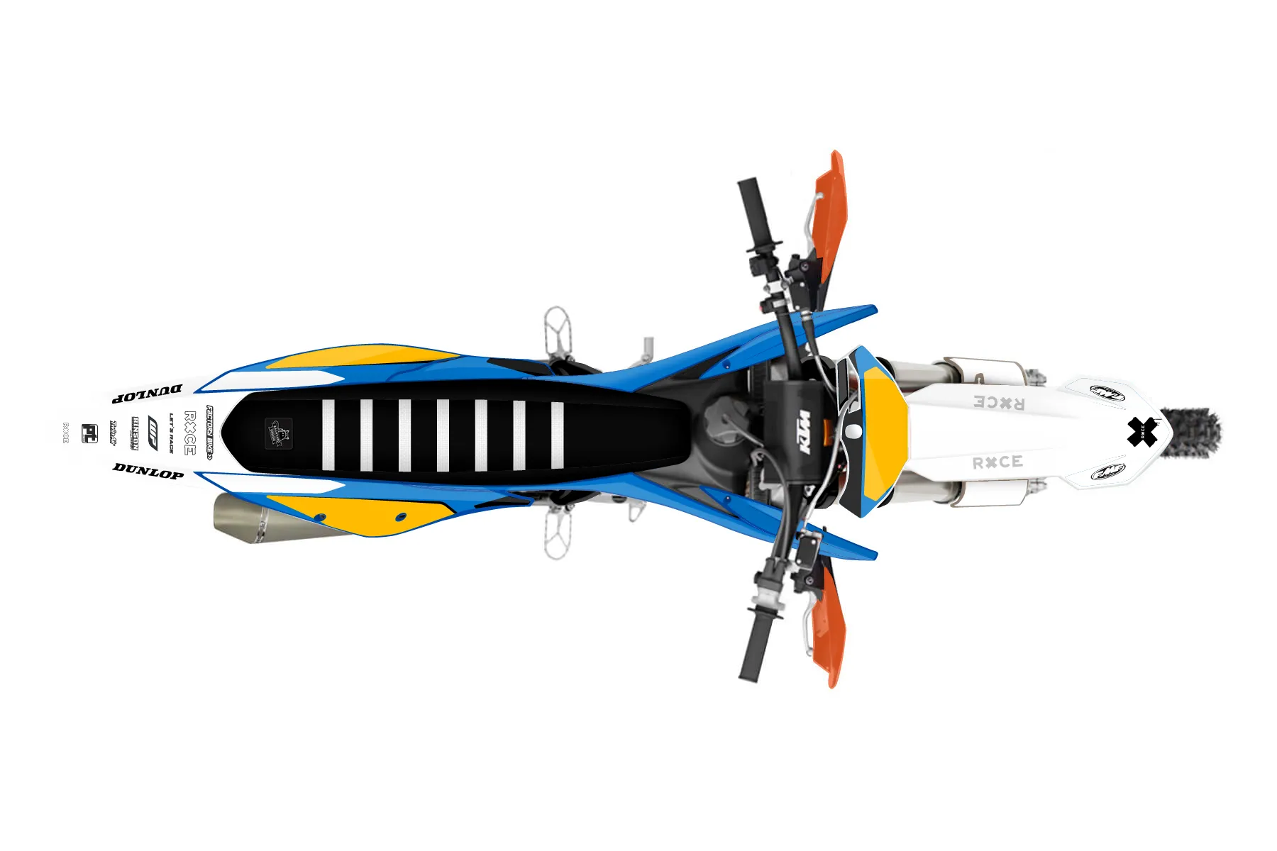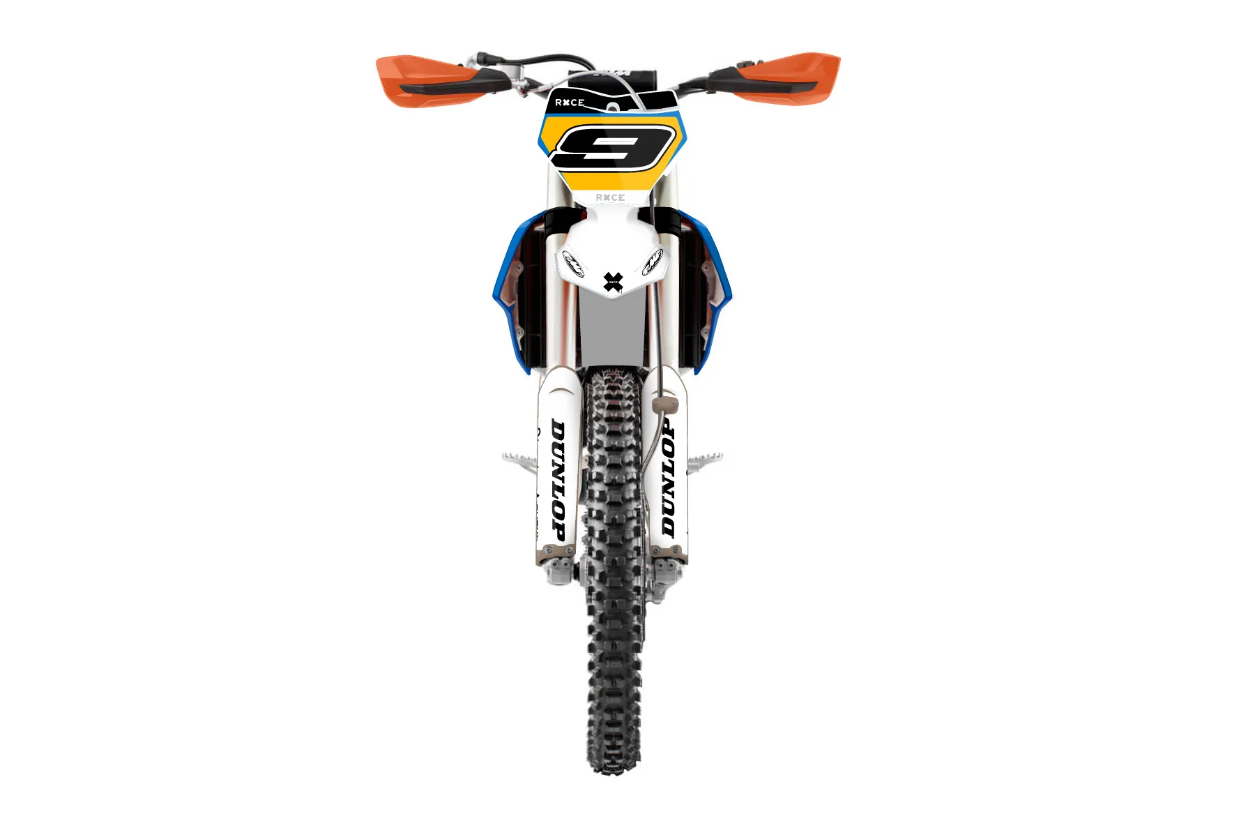 «All-Star» — готовый комплект графики серии Flow для KTM Offroad Graphic Kit KTM XC-F 350 2019. В комплекте: графика на бак и боковые облицовки, крылья (переднее и заднее), передний щиток, номерные таблички, защита вилки. Материал: ПВХ-винил 80 мкр с холодной ламинацией 300 мкр, общая толщина 380 мкр; покрытие глянцевое или матовое на выбор. Устойчив к UV-излучению, воде, бензину и мойке высокого давления. Клей акриловый на сольвентной основе — постоянный, для гибких пластиков. На простых поверхностях монтируется без нагрева; для сложных изгибов рекомендуем фен. Этот пресет можно заказать как есть или взять за основу в конструкторе: поменять цвета, добавить стартовый номер и свой бренд. Производство — 3–5 рабочих дней, доставка по России СДЭКом или Почтой, по СНГ — курьерскими службами.