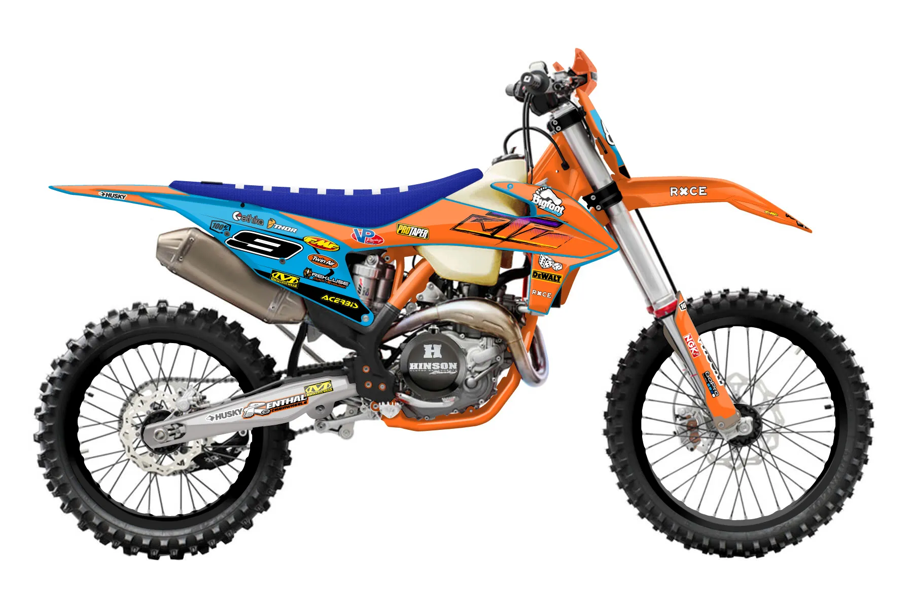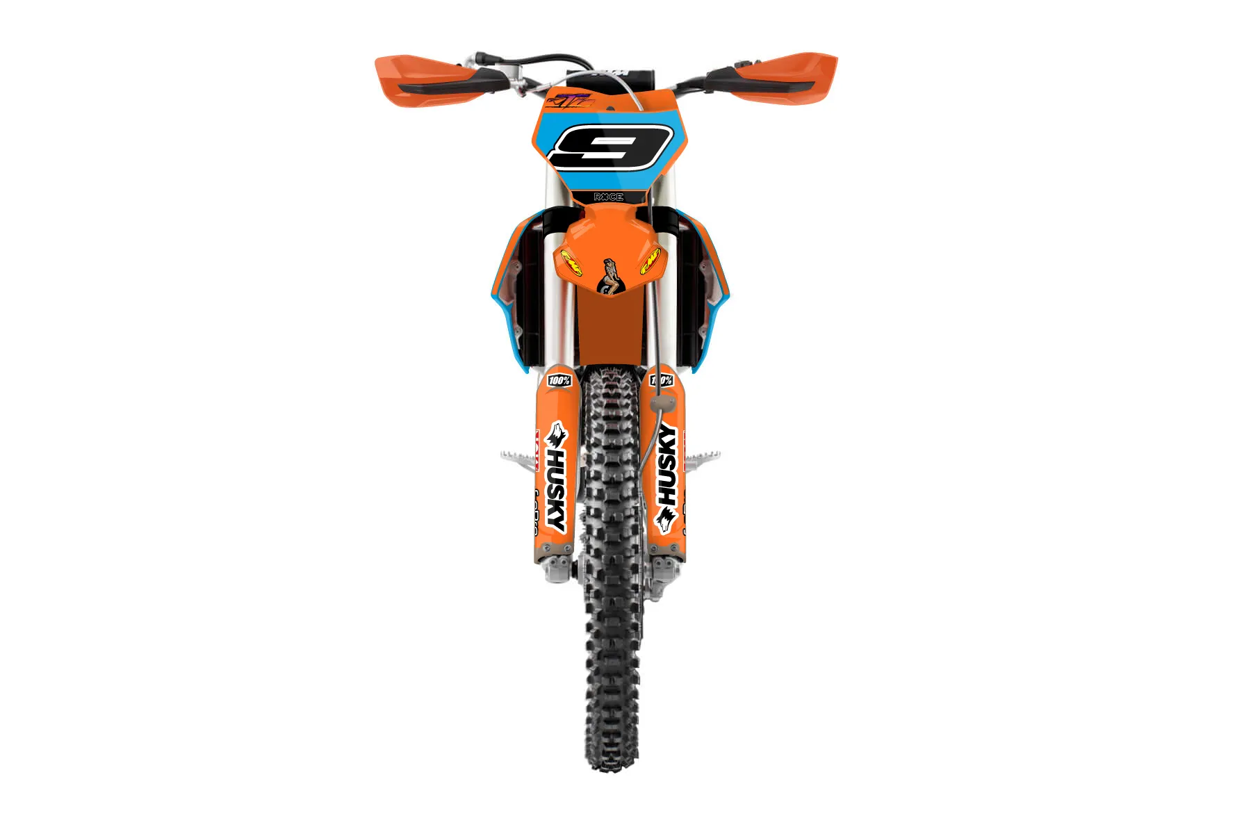 «BABY BLUE BACK & MIDDLE» — готовый комплект графики серии Flow для KTM Offroad Graphic Kit KTM XC-F 350 2019. В комплекте: графика на бак и боковые облицовки, крылья (переднее и заднее), передний щиток, номерные таблички, защита вилки. Материал: ПВХ-винил 80 мкр с холодной ламинацией 300 мкр, общая толщина 380 мкр; покрытие глянцевое или матовое на выбор. Устойчив к UV-излучению, воде, бензину и мойке высокого давления. Клей акриловый на сольвентной основе — постоянный, для гибких пластиков. На простых поверхностях монтируется без нагрева; для сложных изгибов рекомендуем фен. Этот пресет можно заказать как есть или взять за основу в конструкторе: поменять цвета, добавить стартовый номер и свой бренд. Производство — 3–5 рабочих дней, доставка по России СДЭКом или Почтой, по СНГ — курьерскими службами.