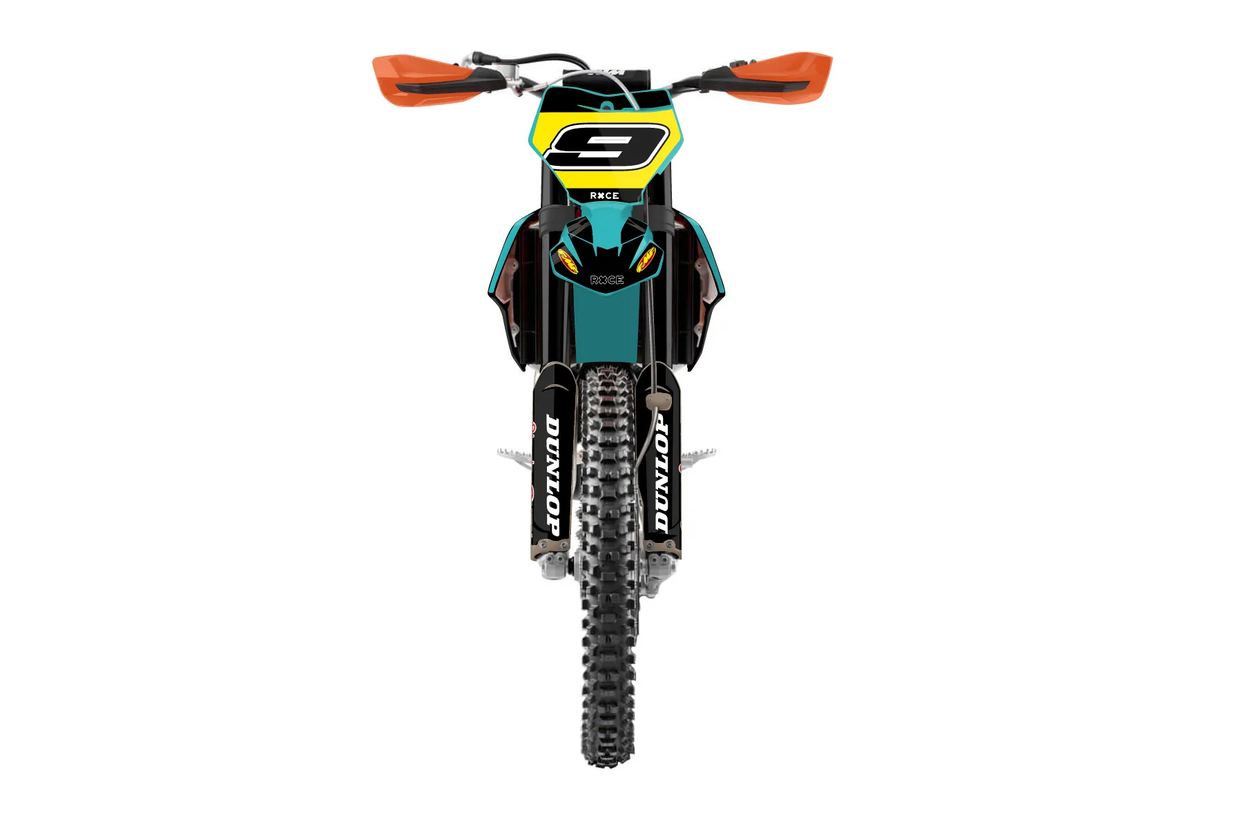 «bblack124» — готовый комплект графики серии Flow для KTM Offroad Graphic Kit KTM XC-F 350 2019. В комплекте: графика на бак и боковые облицовки, крылья (переднее и заднее), передний щиток, номерные таблички, защита вилки. Материал: ПВХ-винил 80 мкр с холодной ламинацией 300 мкр, общая толщина 380 мкр; покрытие глянцевое или матовое на выбор. Устойчив к UV-излучению, воде, бензину и мойке высокого давления. Клей акриловый на сольвентной основе — постоянный, для гибких пластиков. На простых поверхностях монтируется без нагрева; для сложных изгибов рекомендуем фен. Этот пресет можно заказать как есть или взять за основу в конструкторе: поменять цвета, добавить стартовый номер и свой бренд. Производство — 3–5 рабочих дней, доставка по России СДЭКом или Почтой, по СНГ — курьерскими службами.
