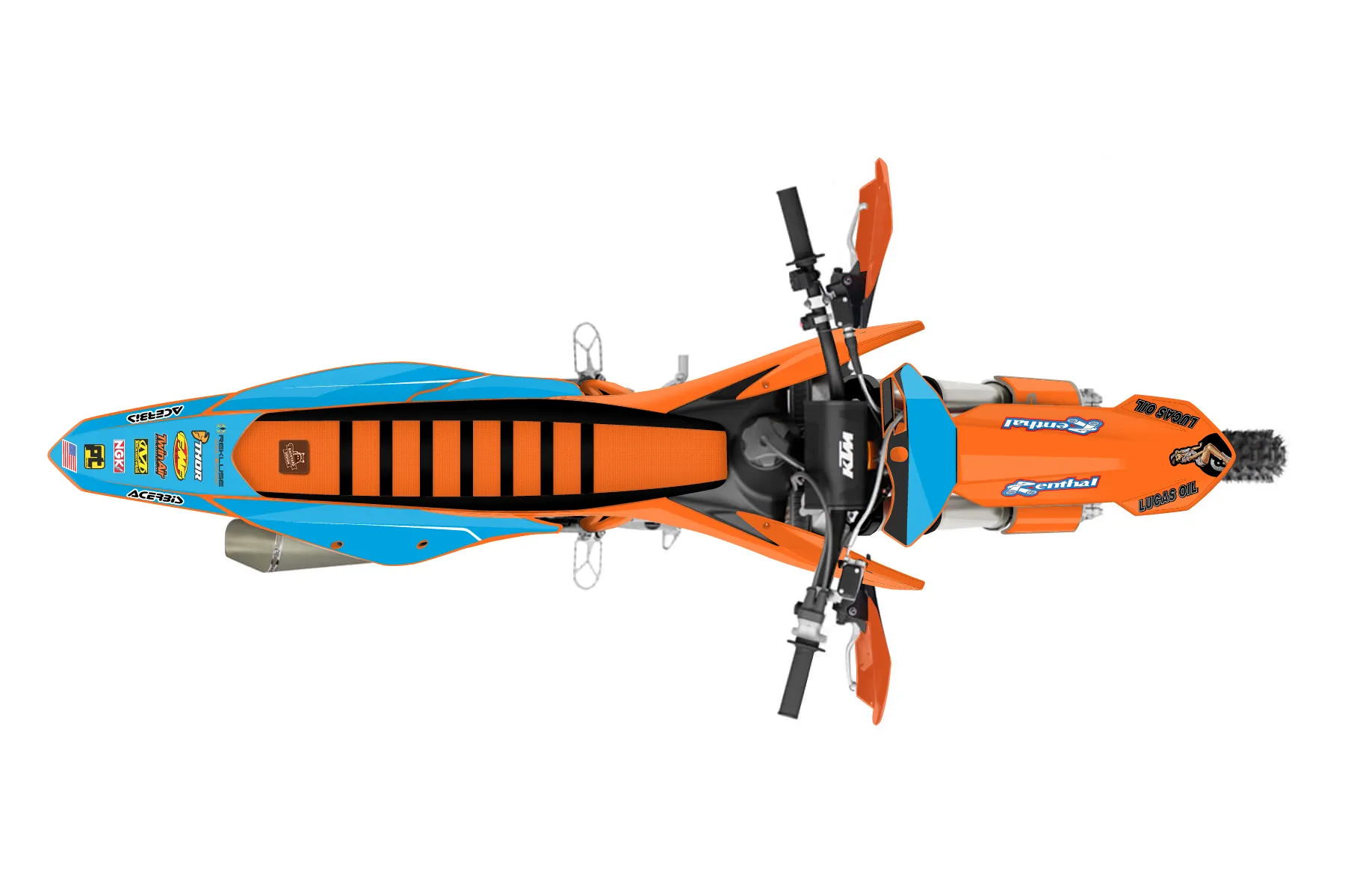 «CustomDesign favorite» — готовый комплект графики серии Flow для KTM Offroad Graphic Kit KTM XC-F 350 2019. В комплекте: графика на бак и боковые облицовки, крылья (переднее и заднее), передний щиток, номерные таблички, защита вилки. Материал: ПВХ-винил 80 мкр с холодной ламинацией 300 мкр, общая толщина 380 мкр; покрытие глянцевое или матовое на выбор. Устойчив к UV-излучению, воде, бензину и мойке высокого давления. Клей акриловый на сольвентной основе — постоянный, для гибких пластиков. На простых поверхностях монтируется без нагрева; для сложных изгибов рекомендуем фен. Этот пресет можно заказать как есть или взять за основу в конструкторе: поменять цвета, добавить стартовый номер и свой бренд. Производство — 3–5 рабочих дней, доставка по России СДЭКом или Почтой, по СНГ — курьерскими службами.