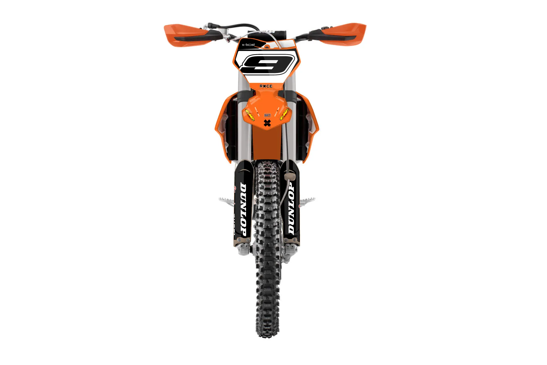 «CustomDesign1» — готовый комплект графики серии Flow для KTM Offroad Graphic Kit KTM XC-F 350 2019. В комплекте: графика на бак и боковые облицовки, крылья (переднее и заднее), передний щиток, номерные таблички, защита вилки. Материал: ПВХ-винил 80 мкр с холодной ламинацией 300 мкр, общая толщина 380 мкр; покрытие глянцевое или матовое на выбор. Устойчив к UV-излучению, воде, бензину и мойке высокого давления. Клей акриловый на сольвентной основе — постоянный, для гибких пластиков. На простых поверхностях монтируется без нагрева; для сложных изгибов рекомендуем фен. Этот пресет можно заказать как есть или взять за основу в конструкторе: поменять цвета, добавить стартовый номер и свой бренд. Производство — 3–5 рабочих дней, доставка по России СДЭКом или Почтой, по СНГ — курьерскими службами.