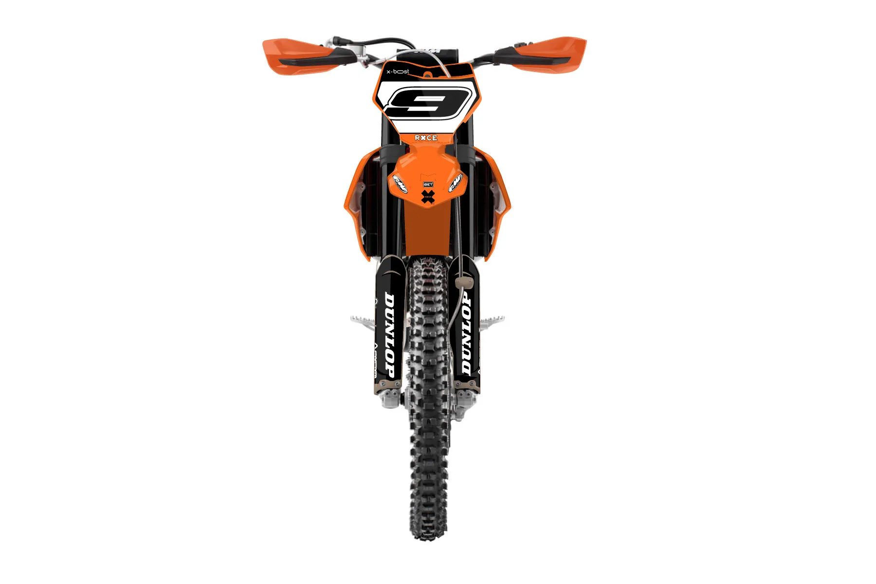 «Spotlight» — готовый комплект графики серии Flow для KTM Offroad Graphic Kit KTM XC-F 350 2019. В комплекте: графика на бак и боковые облицовки, крылья (переднее и заднее), передний щиток, номерные таблички, защита вилки. Материал: ПВХ-винил 80 мкр с холодной ламинацией 300 мкр, общая толщина 380 мкр; покрытие глянцевое или матовое на выбор. Устойчив к UV-излучению, воде, бензину и мойке высокого давления. Клей акриловый на сольвентной основе — постоянный, для гибких пластиков. На простых поверхностях монтируется без нагрева; для сложных изгибов рекомендуем фен. Этот пресет можно заказать как есть или взять за основу в конструкторе: поменять цвета, добавить стартовый номер и свой бренд. Производство — 3–5 рабочих дней, доставка по России СДЭКом или Почтой, по СНГ — курьерскими службами.