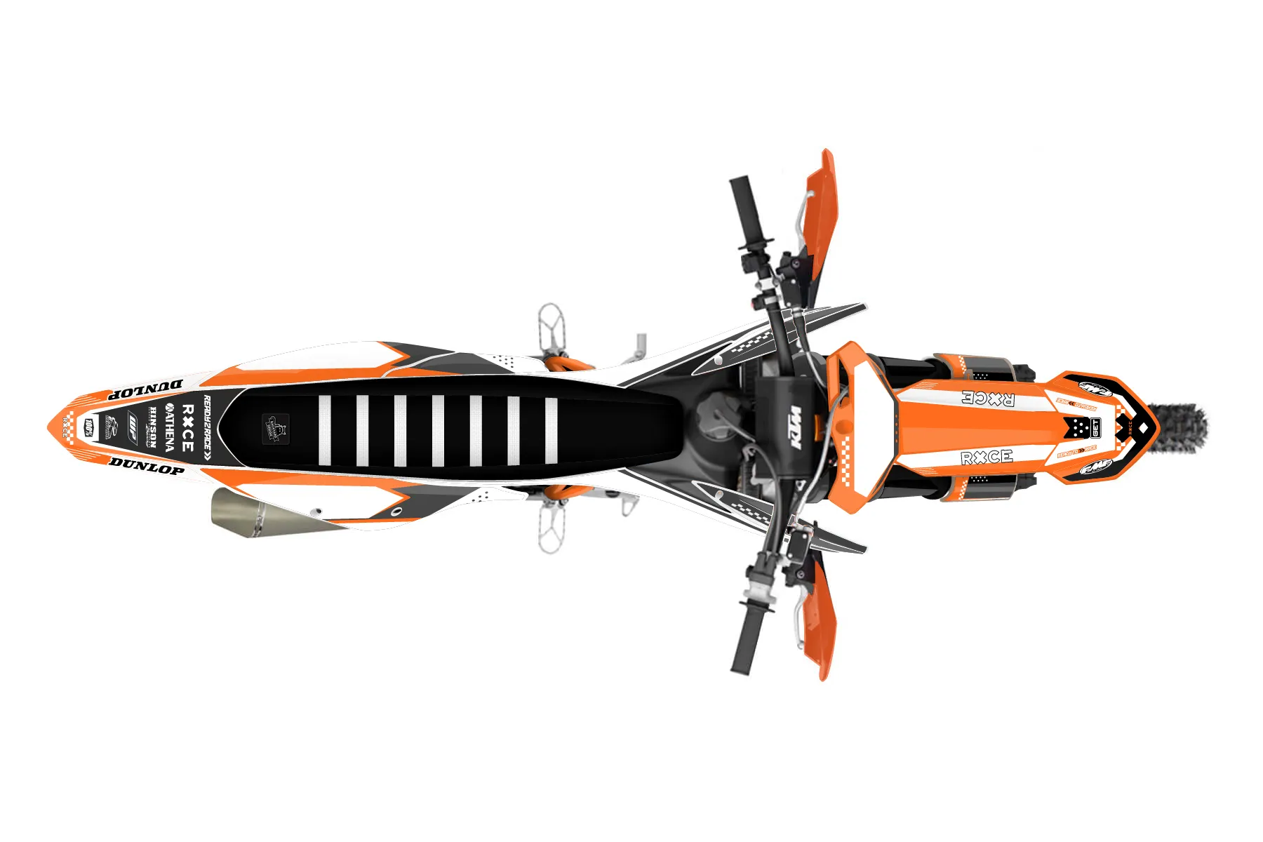 «907GOON» — готовый комплект графики серии Staple для KTM Offroad Graphic Kit KTM XC-F 350 2019. В комплекте: графика на бак и боковые облицовки, крылья (переднее и заднее), передний щиток, номерные таблички, защита вилки. Материал: ПВХ-винил 80 мкр с холодной ламинацией 300 мкр, общая толщина 380 мкр; покрытие глянцевое или матовое на выбор. Устойчив к UV-излучению, воде, бензину и мойке высокого давления. Клей акриловый на сольвентной основе — постоянный, для гибких пластиков. На простых поверхностях монтируется без нагрева; для сложных изгибов рекомендуем фен. Этот пресет можно заказать как есть или взять за основу в конструкторе: поменять цвета, добавить стартовый номер и свой бренд. Производство — 3–5 рабочих дней, доставка по России СДЭКом или Почтой, по СНГ — курьерскими службами.