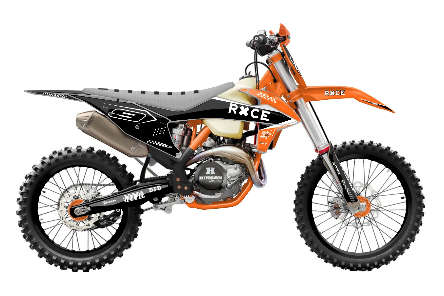 «Craft» — готовый комплект графики серии Staple для KTM Offroad Graphic Kit KTM XC-F 350 2019. В комплекте: графика на бак и боковые облицовки, крылья (переднее и заднее), передний щиток, номерные таблички, защита вилки. Материал: ПВХ-винил 80 мкр с холодной ламинацией 300 мкр, общая толщина 380 мкр; покрытие глянцевое или матовое на выбор. Устойчив к UV-излучению, воде, бензину и мойке высокого давления. Клей акриловый на сольвентной основе — постоянный, для гибких пластиков. На простых поверхностях монтируется без нагрева; для сложных изгибов рекомендуем фен. Этот пресет можно заказать как есть или взять за основу в конструкторе: поменять цвета, добавить стартовый номер и свой бренд. Производство — 3–5 рабочих дней, доставка по России СДЭКом или Почтой, по СНГ — курьерскими службами.