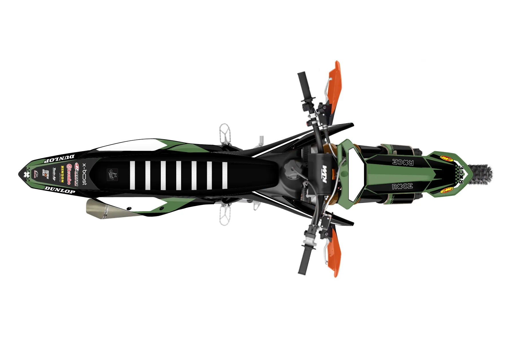 «Dub» — готовый комплект графики серии Staple для KTM Offroad Graphic Kit KTM XC-F 350 2019. В комплекте: графика на бак и боковые облицовки, крылья (переднее и заднее), передний щиток, номерные таблички, защита вилки. Материал: ПВХ-винил 80 мкр с холодной ламинацией 300 мкр, общая толщина 380 мкр; покрытие глянцевое или матовое на выбор. Устойчив к UV-излучению, воде, бензину и мойке высокого давления. Клей акриловый на сольвентной основе — постоянный, для гибких пластиков. На простых поверхностях монтируется без нагрева; для сложных изгибов рекомендуем фен. Этот пресет можно заказать как есть или взять за основу в конструкторе: поменять цвета, добавить стартовый номер и свой бренд. Производство — 3–5 рабочих дней, доставка по России СДЭКом или Почтой, по СНГ — курьерскими службами.