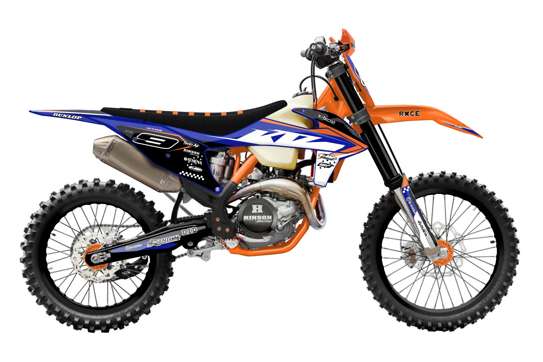 «New Era» — готовый комплект графики серии Staple для KTM Offroad Graphic Kit KTM XC-F 350 2019. В комплекте: графика на бак и боковые облицовки, крылья (переднее и заднее), передний щиток, номерные таблички, защита вилки. Материал: ПВХ-винил 80 мкр с холодной ламинацией 300 мкр, общая толщина 380 мкр; покрытие глянцевое или матовое на выбор. Устойчив к UV-излучению, воде, бензину и мойке высокого давления. Клей акриловый на сольвентной основе — постоянный, для гибких пластиков. На простых поверхностях монтируется без нагрева; для сложных изгибов рекомендуем фен. Этот пресет можно заказать как есть или взять за основу в конструкторе: поменять цвета, добавить стартовый номер и свой бренд. Производство — 3–5 рабочих дней, доставка по России СДЭКом или Почтой, по СНГ — курьерскими службами.