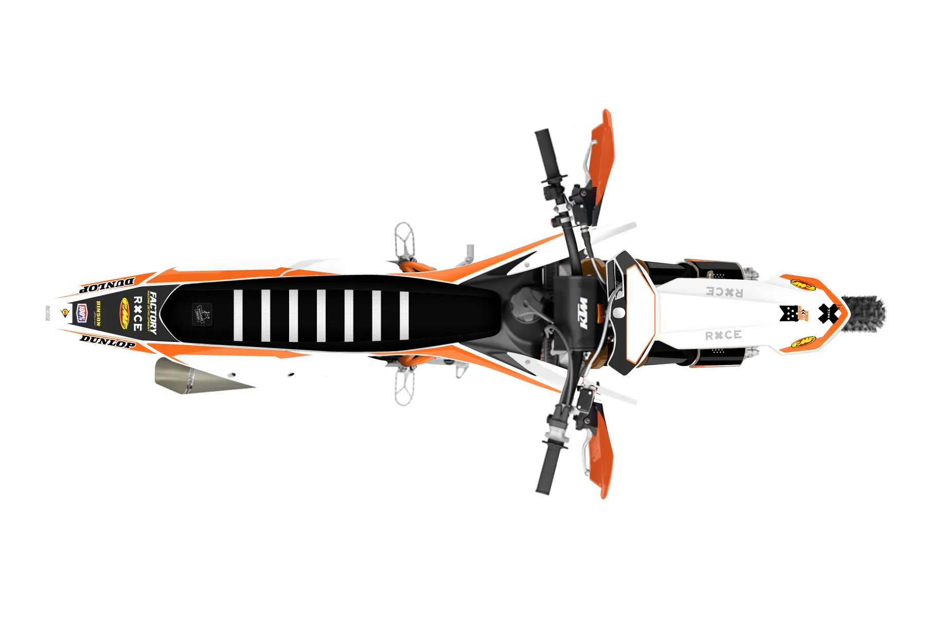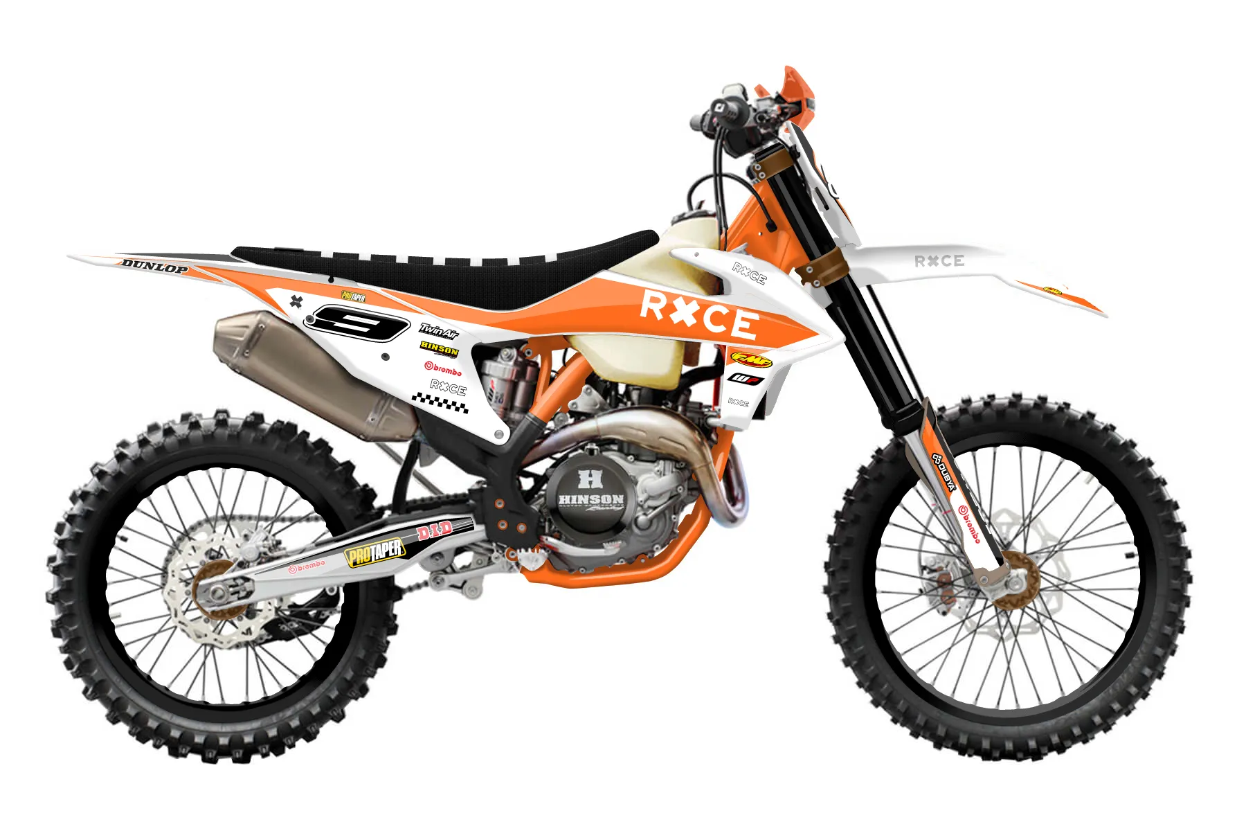 «Tilled» — готовый комплект графики серии Staple для KTM Offroad Graphic Kit KTM XC-F 350 2019. В комплекте: графика на бак и боковые облицовки, крылья (переднее и заднее), передний щиток, номерные таблички, защита вилки. Материал: ПВХ-винил 80 мкр с холодной ламинацией 300 мкр, общая толщина 380 мкр; покрытие глянцевое или матовое на выбор. Устойчив к UV-излучению, воде, бензину и мойке высокого давления. Клей акриловый на сольвентной основе — постоянный, для гибких пластиков. На простых поверхностях монтируется без нагрева; для сложных изгибов рекомендуем фен. Этот пресет можно заказать как есть или взять за основу в конструкторе: поменять цвета, добавить стартовый номер и свой бренд. Производство — 3–5 рабочих дней, доставка по России СДЭКом или Почтой, по СНГ — курьерскими службами.