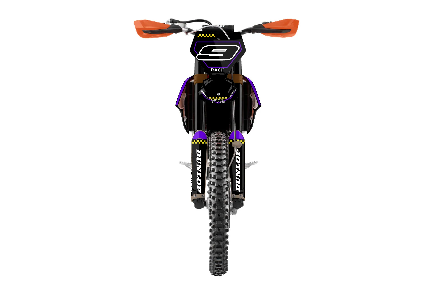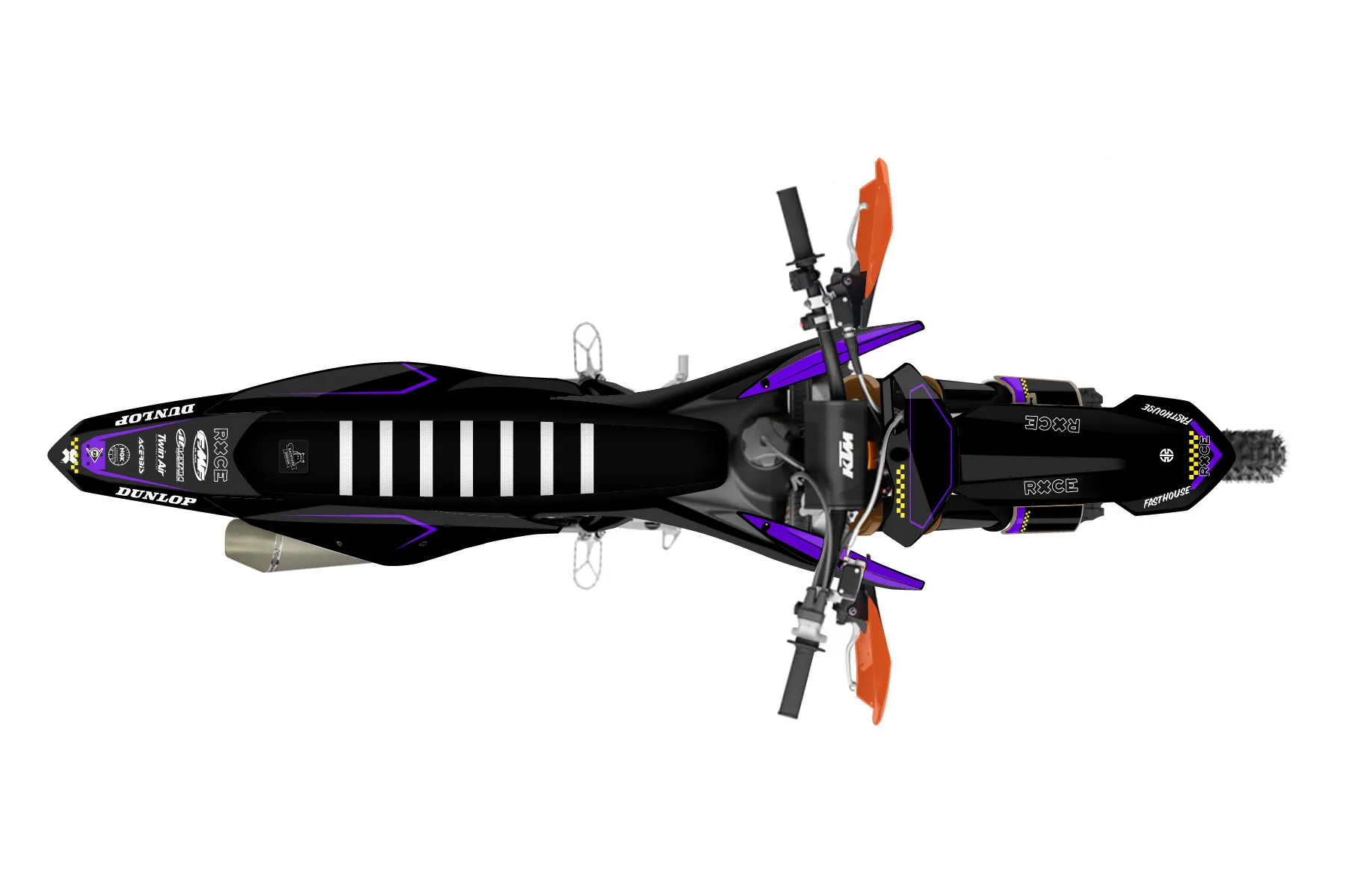 «Virtual» — готовый комплект графики серии Staple для KTM Offroad Graphic Kit KTM XC-F 350 2019. В комплекте: графика на бак и боковые облицовки, крылья (переднее и заднее), передний щиток, номерные таблички, защита вилки. Материал: ПВХ-винил 80 мкр с холодной ламинацией 300 мкр, общая толщина 380 мкр; покрытие глянцевое или матовое на выбор. Устойчив к UV-излучению, воде, бензину и мойке высокого давления. Клей акриловый на сольвентной основе — постоянный, для гибких пластиков. На простых поверхностях монтируется без нагрева; для сложных изгибов рекомендуем фен. Этот пресет можно заказать как есть или взять за основу в конструкторе: поменять цвета, добавить стартовый номер и свой бренд. Производство — 3–5 рабочих дней, доставка по России СДЭКом или Почтой, по СНГ — курьерскими службами.