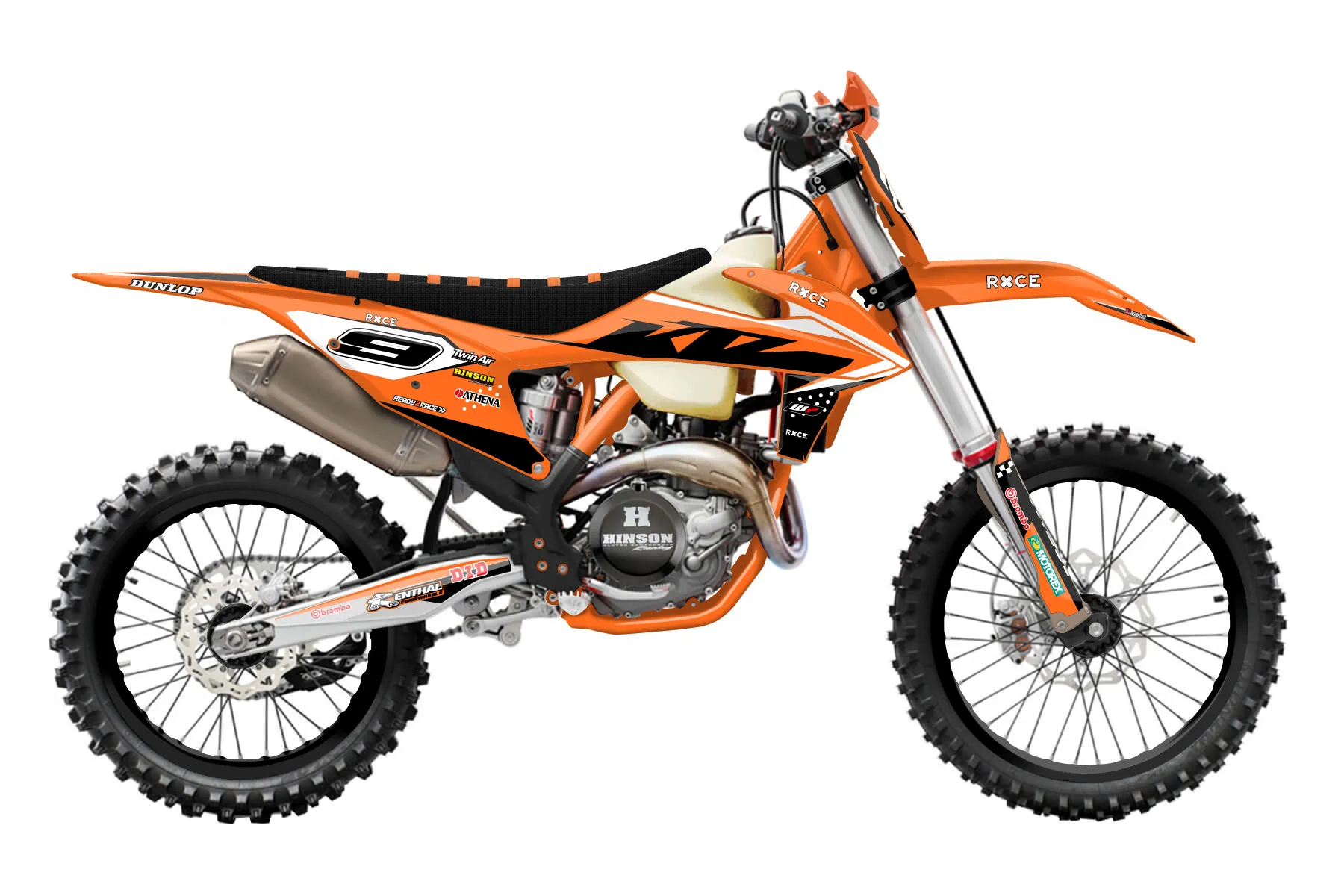 «Volt» — готовый комплект графики серии Staple для KTM Offroad Graphic Kit KTM XC-F 350 2019. В комплекте: графика на бак и боковые облицовки, крылья (переднее и заднее), передний щиток, номерные таблички, защита вилки. Материал: ПВХ-винил 80 мкр с холодной ламинацией 300 мкр, общая толщина 380 мкр; покрытие глянцевое или матовое на выбор. Устойчив к UV-излучению, воде, бензину и мойке высокого давления. Клей акриловый на сольвентной основе — постоянный, для гибких пластиков. На простых поверхностях монтируется без нагрева; для сложных изгибов рекомендуем фен. Этот пресет можно заказать как есть или взять за основу в конструкторе: поменять цвета, добавить стартовый номер и свой бренд. Производство — 3–5 рабочих дней, доставка по России СДЭКом или Почтой, по СНГ — курьерскими службами.