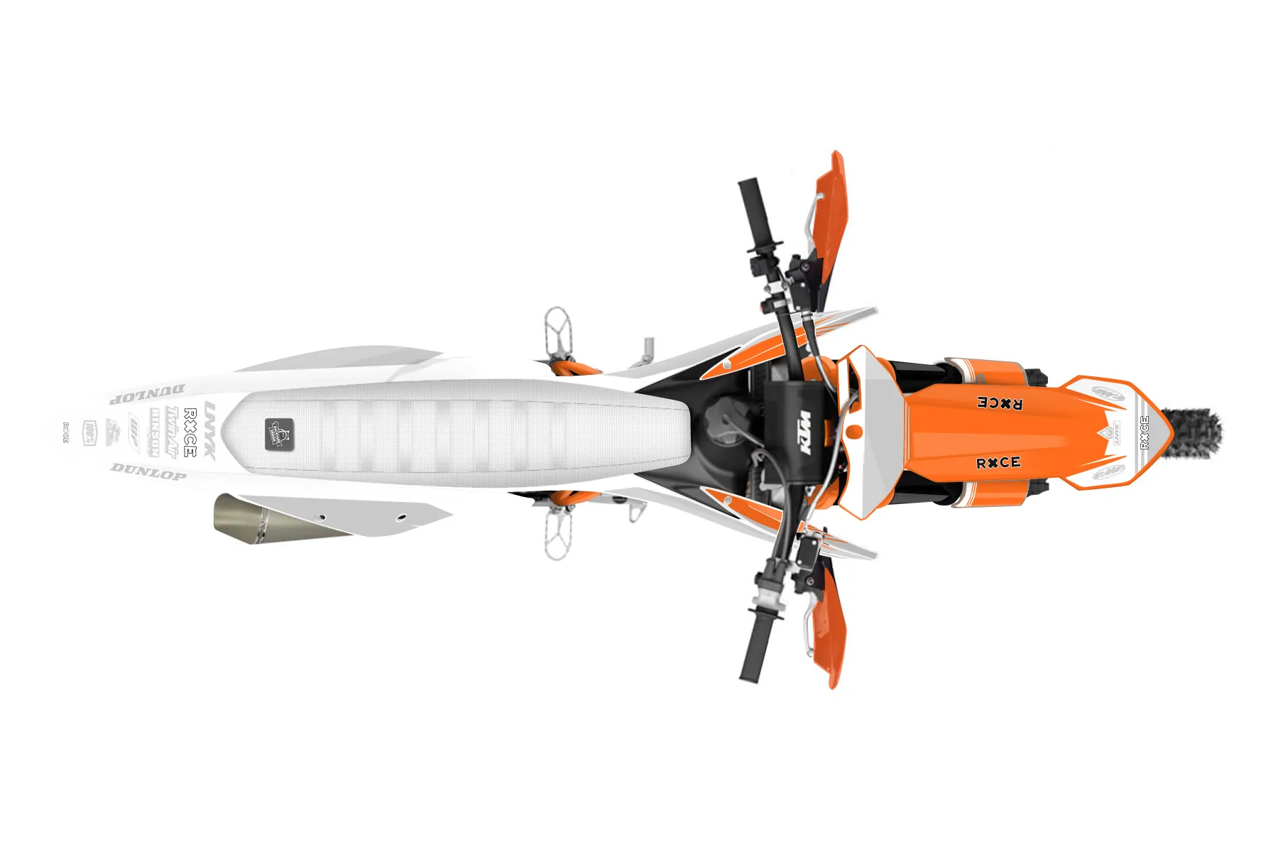 «Flying» — готовый комплект графики серии Untucked для KTM Offroad Graphic Kit KTM XC-F 350 2019. В комплекте: графика на бак и боковые облицовки, крылья (переднее и заднее), передний щиток, номерные таблички, защита вилки. Материал: ПВХ-винил 80 мкр с холодной ламинацией 300 мкр, общая толщина 380 мкр; покрытие глянцевое или матовое на выбор. Устойчив к UV-излучению, воде, бензину и мойке высокого давления. Клей акриловый на сольвентной основе — постоянный, для гибких пластиков. На простых поверхностях монтируется без нагрева; для сложных изгибов рекомендуем фен. Этот пресет можно заказать как есть или взять за основу в конструкторе: поменять цвета, добавить стартовый номер и свой бренд. Производство — 3–5 рабочих дней, доставка по России СДЭКом или Почтой, по СНГ — курьерскими службами.