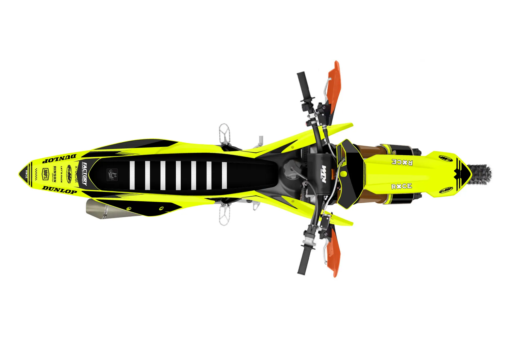 «Loose Neon» — готовый комплект графики серии Untucked для KTM Offroad Graphic Kit KTM XC-F 350 2019. В комплекте: графика на бак и боковые облицовки, крылья (переднее и заднее), передний щиток, номерные таблички, защита вилки. Материал: ПВХ-винил 80 мкр с холодной ламинацией 300 мкр, общая толщина 380 мкр; покрытие глянцевое или матовое на выбор. Устойчив к UV-излучению, воде, бензину и мойке высокого давления. Клей акриловый на сольвентной основе — постоянный, для гибких пластиков. На простых поверхностях монтируется без нагрева; для сложных изгибов рекомендуем фен. Этот пресет можно заказать как есть или взять за основу в конструкторе: поменять цвета, добавить стартовый номер и свой бренд. Производство — 3–5 рабочих дней, доставка по России СДЭКом или Почтой, по СНГ — курьерскими службами.