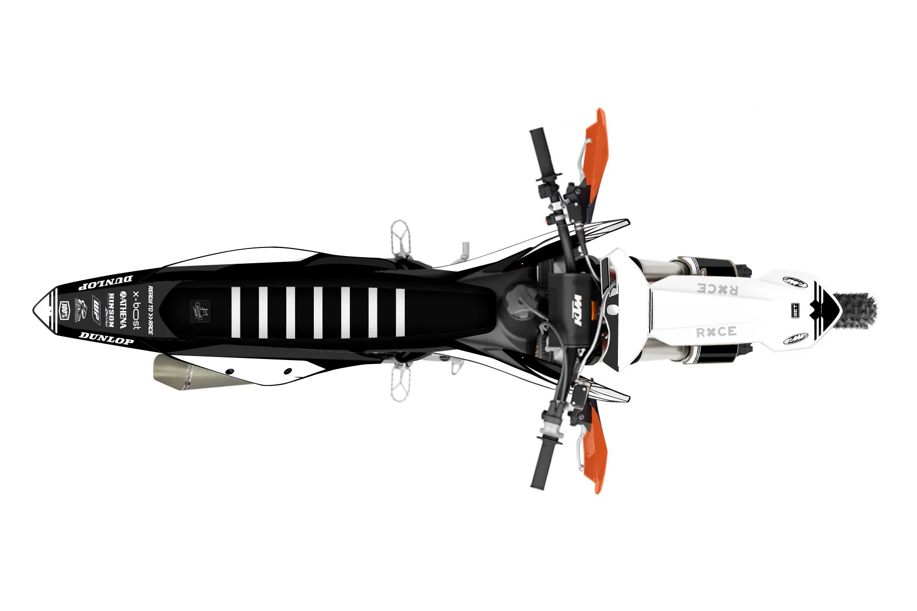 «Specific» — готовый комплект графики серии Untucked для KTM Offroad Graphic Kit KTM XC-F 350 2019. В комплекте: графика на бак и боковые облицовки, крылья (переднее и заднее), передний щиток, номерные таблички, защита вилки. Материал: ПВХ-винил 80 мкр с холодной ламинацией 300 мкр, общая толщина 380 мкр; покрытие глянцевое или матовое на выбор. Устойчив к UV-излучению, воде, бензину и мойке высокого давления. Клей акриловый на сольвентной основе — постоянный, для гибких пластиков. На простых поверхностях монтируется без нагрева; для сложных изгибов рекомендуем фен. Этот пресет можно заказать как есть или взять за основу в конструкторе: поменять цвета, добавить стартовый номер и свой бренд. Производство — 3–5 рабочих дней, доставка по России СДЭКом или Почтой, по СНГ — курьерскими службами.