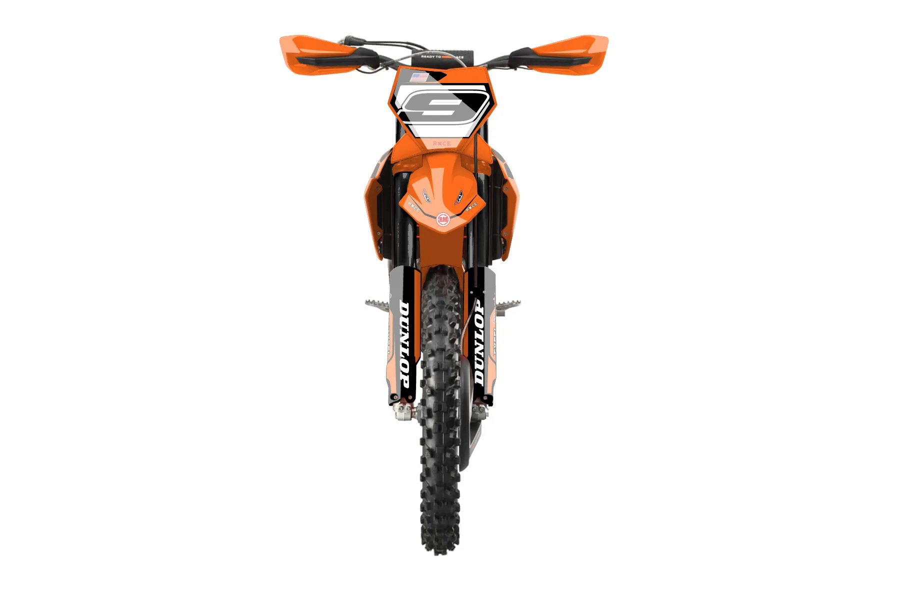 «350 xc-f » — готовый комплект графики серии Flow для KTM Offroad Graphic Kit KTM XC-F 350 2023. В комплекте: графика на бак и боковые облицовки, крылья (переднее и заднее), передний щиток, номерные таблички, защита вилки. Материал: ПВХ-винил 80 мкр с холодной ламинацией 300 мкр, общая толщина 380 мкр; покрытие глянцевое или матовое на выбор. Устойчив к UV-излучению, воде, бензину и мойке высокого давления. Клей акриловый на сольвентной основе — постоянный, для гибких пластиков. На простых поверхностях монтируется без нагрева; для сложных изгибов рекомендуем фен. Этот пресет можно заказать как есть или взять за основу в конструкторе: поменять цвета, добавить стартовый номер и свой бренд. Производство — 3–5 рабочих дней, доставка по России СДЭКом или Почтой, по СНГ — курьерскими службами.