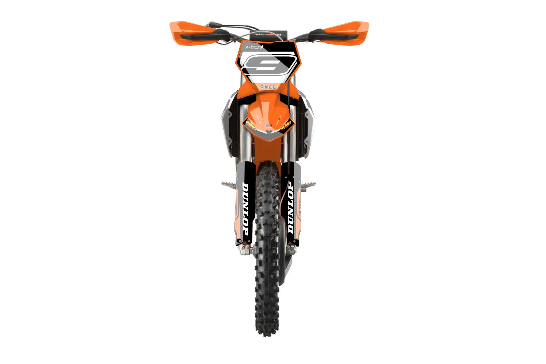 «Answer» — готовый комплект графики серии Flow для KTM Offroad Graphic Kit KTM XC-F 350 2023. В комплекте: графика на бак и боковые облицовки, крылья (переднее и заднее), передний щиток, номерные таблички, защита вилки. Материал: ПВХ-винил 80 мкр с холодной ламинацией 300 мкр, общая толщина 380 мкр; покрытие глянцевое или матовое на выбор. Устойчив к UV-излучению, воде, бензину и мойке высокого давления. Клей акриловый на сольвентной основе — постоянный, для гибких пластиков. На простых поверхностях монтируется без нагрева; для сложных изгибов рекомендуем фен. Этот пресет можно заказать как есть или взять за основу в конструкторе: поменять цвета, добавить стартовый номер и свой бренд. Производство — 3–5 рабочих дней, доставка по России СДЭКом или Почтой, по СНГ — курьерскими службами.