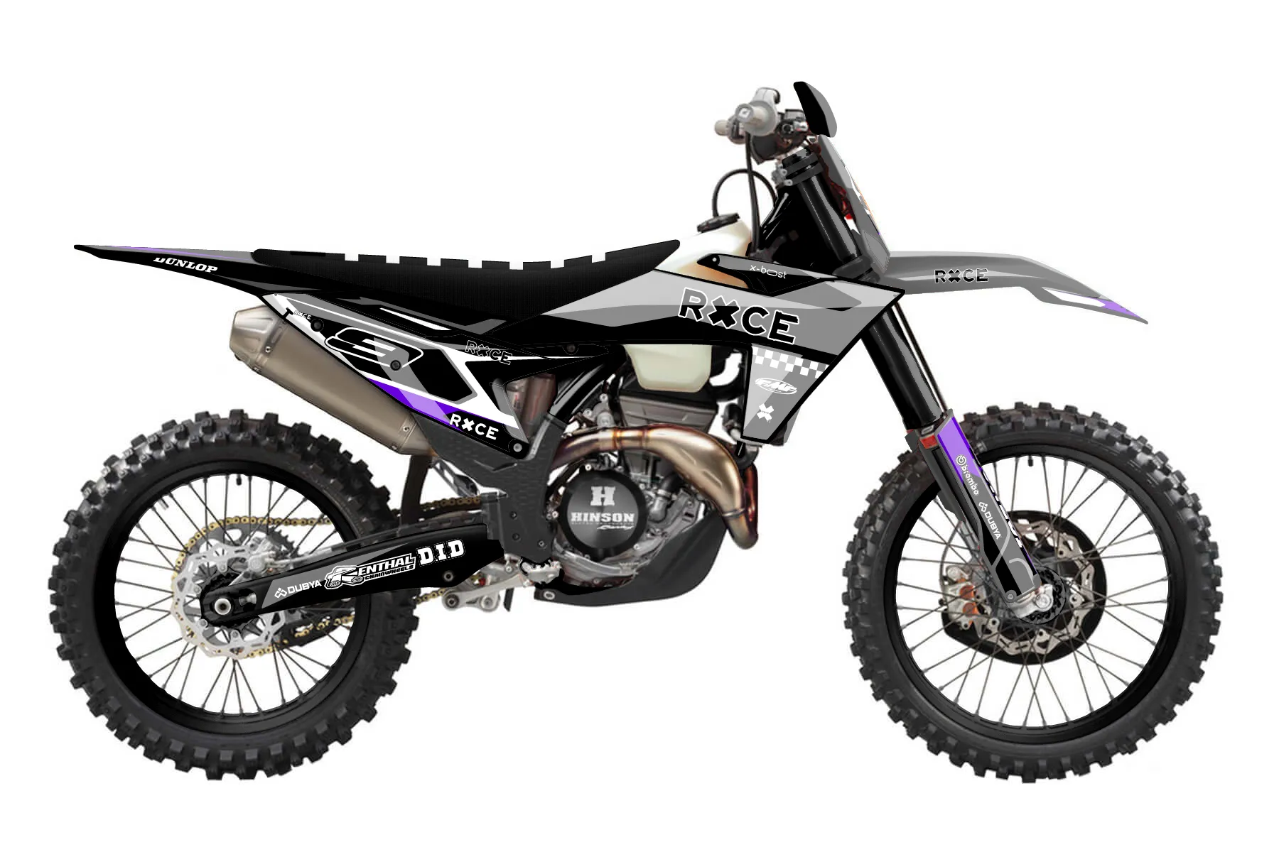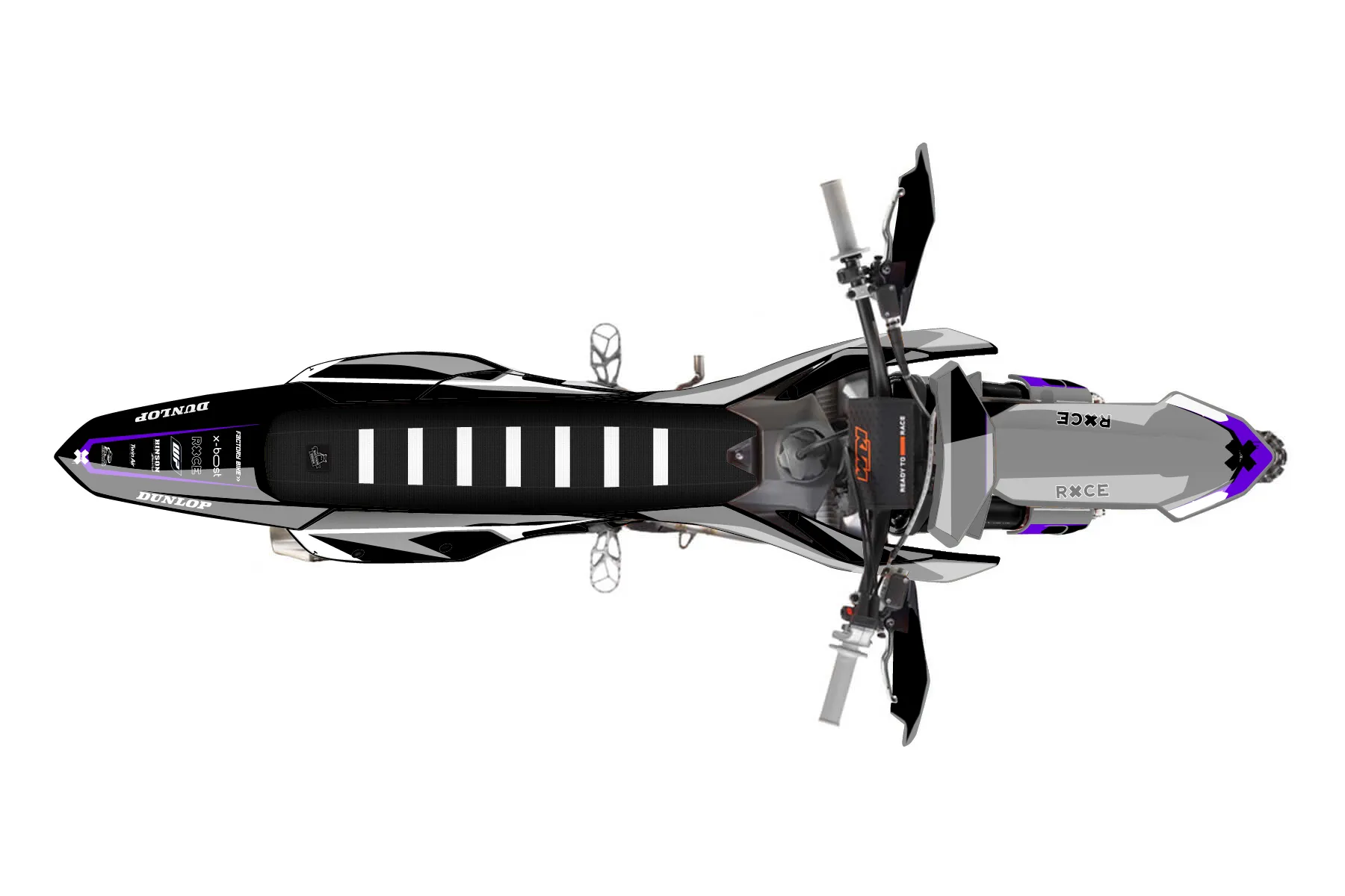 «Cyber Pirate» — готовый комплект графики серии Flow для KTM Offroad Graphic Kit KTM XC-F 350 2023. В комплекте: графика на бак и боковые облицовки, крылья (переднее и заднее), передний щиток, номерные таблички, защита вилки. Материал: ПВХ-винил 80 мкр с холодной ламинацией 300 мкр, общая толщина 380 мкр; покрытие глянцевое или матовое на выбор. Устойчив к UV-излучению, воде, бензину и мойке высокого давления. Клей акриловый на сольвентной основе — постоянный, для гибких пластиков. На простых поверхностях монтируется без нагрева; для сложных изгибов рекомендуем фен. Этот пресет можно заказать как есть или взять за основу в конструкторе: поменять цвета, добавить стартовый номер и свой бренд. Производство — 3–5 рабочих дней, доставка по России СДЭКом или Почтой, по СНГ — курьерскими службами.