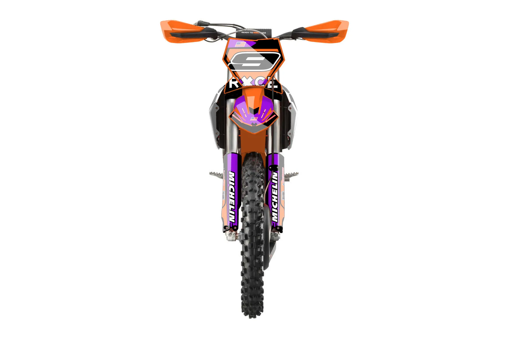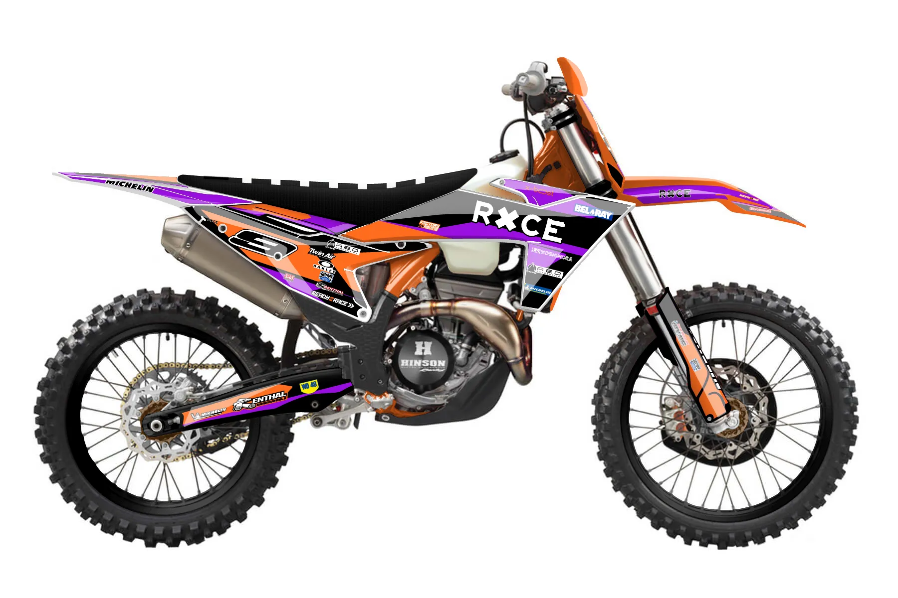 «Final » — готовый комплект графики серии Flow для KTM Offroad Graphic Kit KTM XC-F 350 2023. В комплекте: графика на бак и боковые облицовки, крылья (переднее и заднее), передний щиток, номерные таблички, защита вилки. Материал: ПВХ-винил 80 мкр с холодной ламинацией 300 мкр, общая толщина 380 мкр; покрытие глянцевое или матовое на выбор. Устойчив к UV-излучению, воде, бензину и мойке высокого давления. Клей акриловый на сольвентной основе — постоянный, для гибких пластиков. На простых поверхностях монтируется без нагрева; для сложных изгибов рекомендуем фен. Этот пресет можно заказать как есть или взять за основу в конструкторе: поменять цвета, добавить стартовый номер и свой бренд. Производство — 3–5 рабочих дней, доставка по России СДЭКом или Почтой, по СНГ — курьерскими службами.