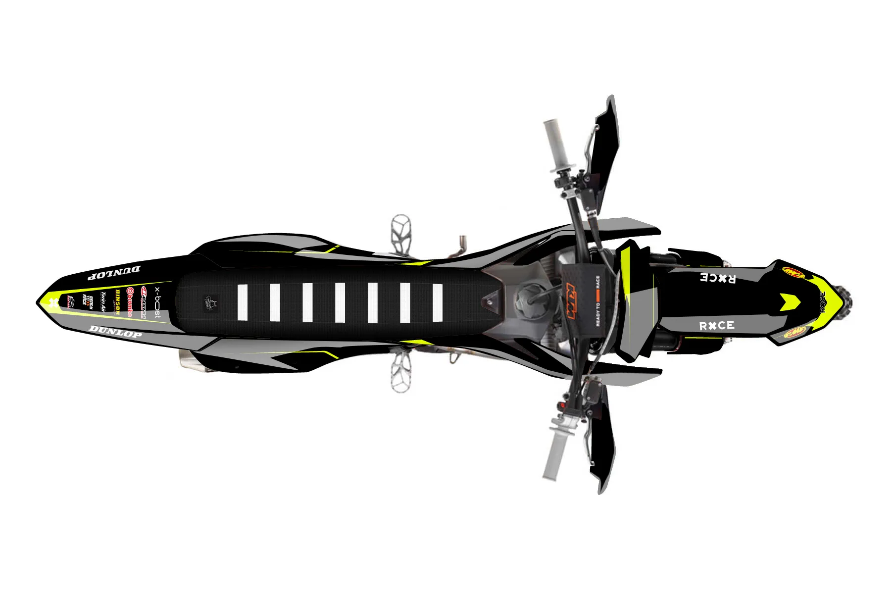 «Form» — готовый комплект графики серии Flow для KTM Offroad Graphic Kit KTM XC-F 350 2023. В комплекте: графика на бак и боковые облицовки, крылья (переднее и заднее), передний щиток, номерные таблички, защита вилки. Материал: ПВХ-винил 80 мкр с холодной ламинацией 300 мкр, общая толщина 380 мкр; покрытие глянцевое или матовое на выбор. Устойчив к UV-излучению, воде, бензину и мойке высокого давления. Клей акриловый на сольвентной основе — постоянный, для гибких пластиков. На простых поверхностях монтируется без нагрева; для сложных изгибов рекомендуем фен. Этот пресет можно заказать как есть или взять за основу в конструкторе: поменять цвета, добавить стартовый номер и свой бренд. Производство — 3–5 рабочих дней, доставка по России СДЭКом или Почтой, по СНГ — курьерскими службами.