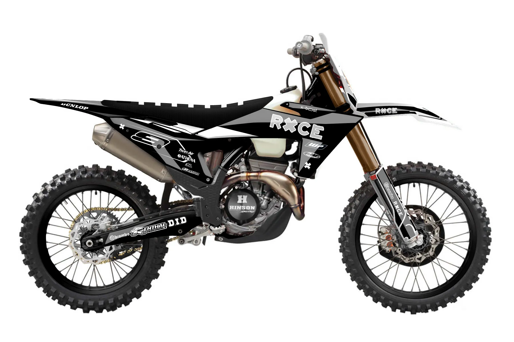 «Pattern» — готовый комплект графики серии Flow для KTM Offroad Graphic Kit KTM XC-F 350 2023. В комплекте: графика на бак и боковые облицовки, крылья (переднее и заднее), передний щиток, номерные таблички, защита вилки. Материал: ПВХ-винил 80 мкр с холодной ламинацией 300 мкр, общая толщина 380 мкр; покрытие глянцевое или матовое на выбор. Устойчив к UV-излучению, воде, бензину и мойке высокого давления. Клей акриловый на сольвентной основе — постоянный, для гибких пластиков. На простых поверхностях монтируется без нагрева; для сложных изгибов рекомендуем фен. Этот пресет можно заказать как есть или взять за основу в конструкторе: поменять цвета, добавить стартовый номер и свой бренд. Производство — 3–5 рабочих дней, доставка по России СДЭКом или Почтой, по СНГ — курьерскими службами.