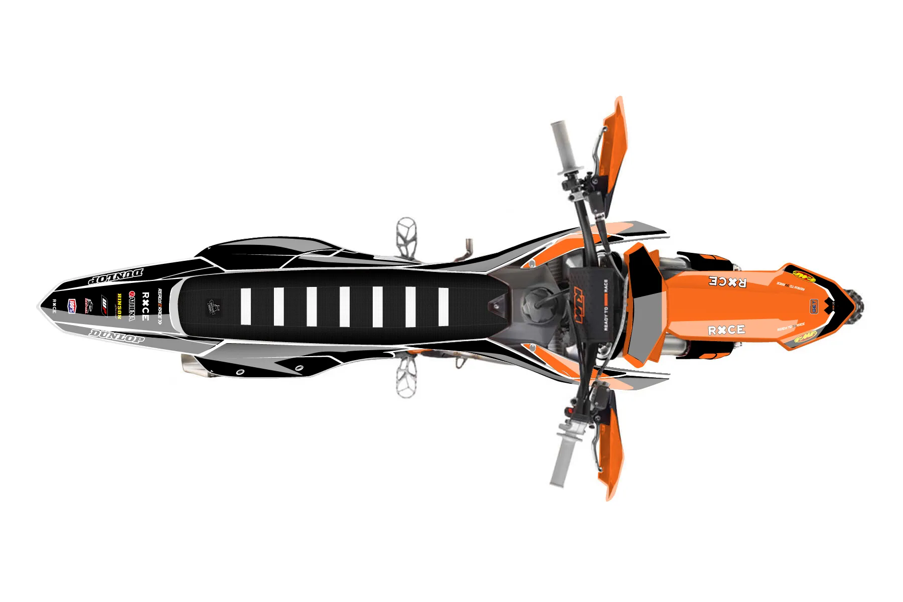 «Throwback» — готовый комплект графики серии Flow для KTM Offroad Graphic Kit KTM XC-F 350 2023. В комплекте: графика на бак и боковые облицовки, крылья (переднее и заднее), передний щиток, номерные таблички, защита вилки. Материал: ПВХ-винил 80 мкр с холодной ламинацией 300 мкр, общая толщина 380 мкр; покрытие глянцевое или матовое на выбор. Устойчив к UV-излучению, воде, бензину и мойке высокого давления. Клей акриловый на сольвентной основе — постоянный, для гибких пластиков. На простых поверхностях монтируется без нагрева; для сложных изгибов рекомендуем фен. Этот пресет можно заказать как есть или взять за основу в конструкторе: поменять цвета, добавить стартовый номер и свой бренд. Производство — 3–5 рабочих дней, доставка по России СДЭКом или Почтой, по СНГ — курьерскими службами.