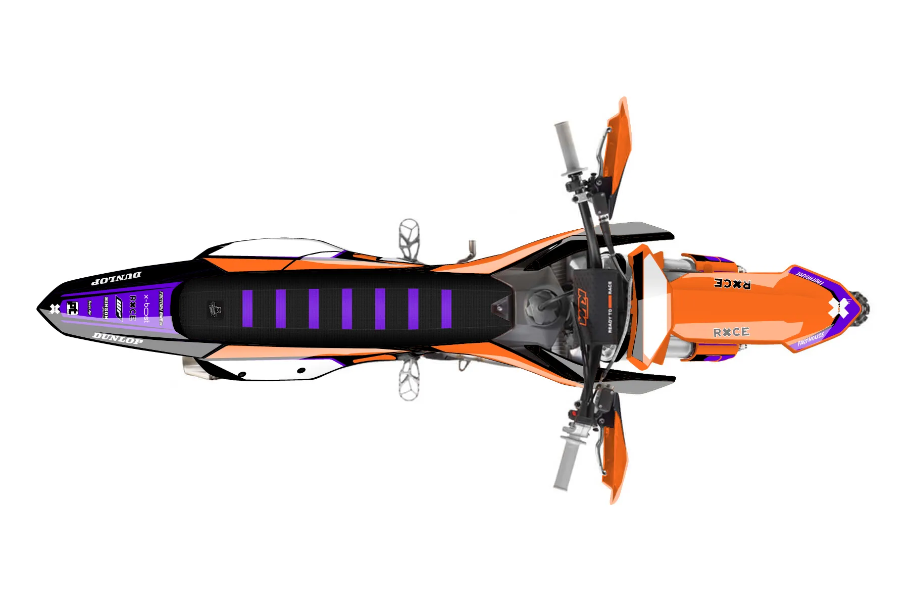 «Tyler 2025 purp» — готовый комплект графики серии Flow для KTM Offroad Graphic Kit KTM XC-F 350 2023. В комплекте: графика на бак и боковые облицовки, крылья (переднее и заднее), передний щиток, номерные таблички, защита вилки. Материал: ПВХ-винил 80 мкр с холодной ламинацией 300 мкр, общая толщина 380 мкр; покрытие глянцевое или матовое на выбор. Устойчив к UV-излучению, воде, бензину и мойке высокого давления. Клей акриловый на сольвентной основе — постоянный, для гибких пластиков. На простых поверхностях монтируется без нагрева; для сложных изгибов рекомендуем фен. Этот пресет можно заказать как есть или взять за основу в конструкторе: поменять цвета, добавить стартовый номер и свой бренд. Производство — 3–5 рабочих дней, доставка по России СДЭКом или Почтой, по СНГ — курьерскими службами.