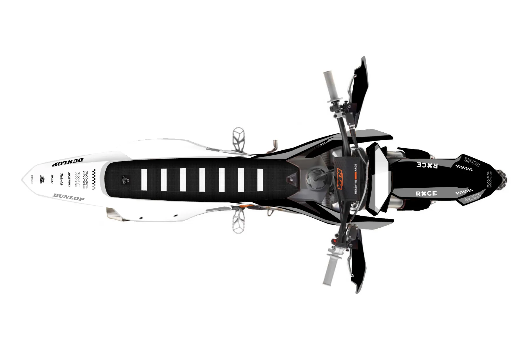 «Vector» — готовый комплект графики серии Flow для KTM Offroad Graphic Kit KTM XC-F 350 2023. В комплекте: графика на бак и боковые облицовки, крылья (переднее и заднее), передний щиток, номерные таблички, защита вилки. Материал: ПВХ-винил 80 мкр с холодной ламинацией 300 мкр, общая толщина 380 мкр; покрытие глянцевое или матовое на выбор. Устойчив к UV-излучению, воде, бензину и мойке высокого давления. Клей акриловый на сольвентной основе — постоянный, для гибких пластиков. На простых поверхностях монтируется без нагрева; для сложных изгибов рекомендуем фен. Этот пресет можно заказать как есть или взять за основу в конструкторе: поменять цвета, добавить стартовый номер и свой бренд. Производство — 3–5 рабочих дней, доставка по России СДЭКом или Почтой, по СНГ — курьерскими службами.