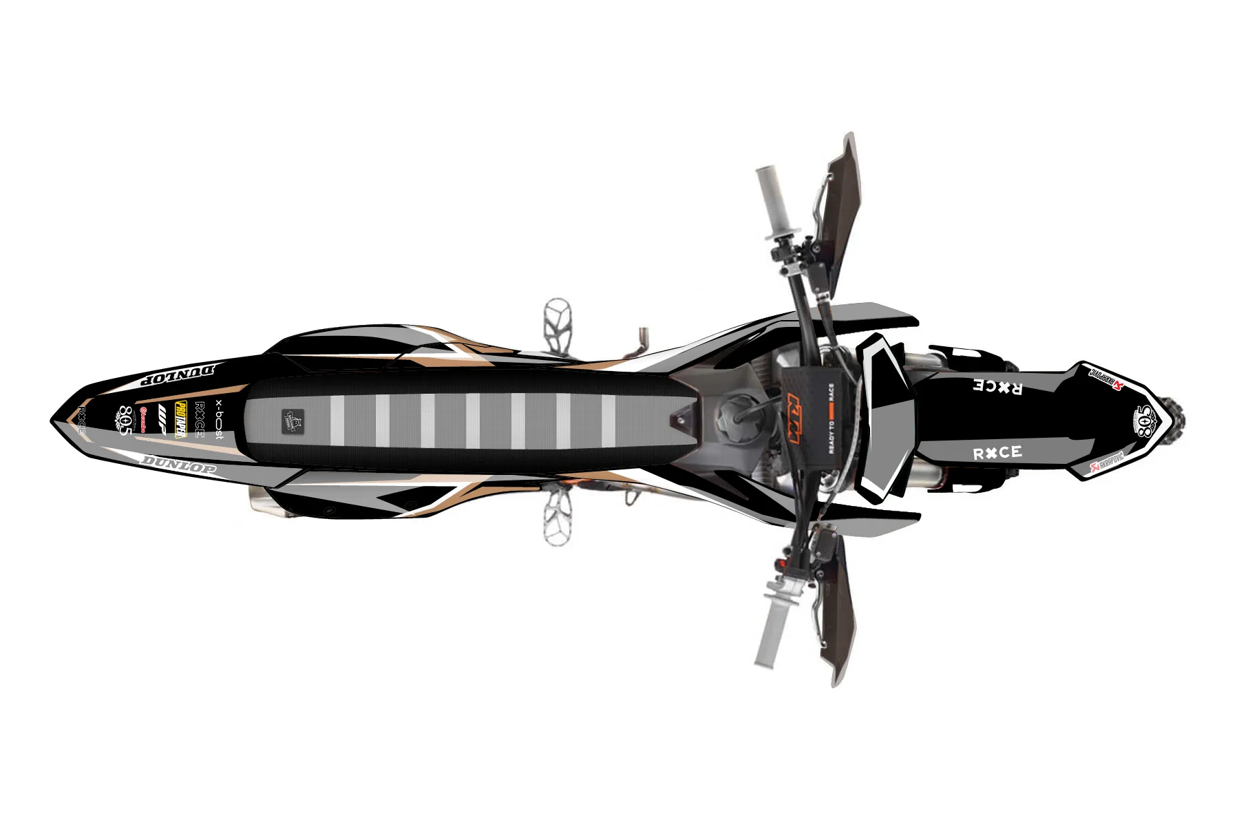 «Secure» — готовый комплект графики серии Fusion для KTM Offroad Graphic Kit KTM XC-F 350 2023. В комплекте: графика на бак и боковые облицовки, крылья (переднее и заднее), передний щиток, номерные таблички, защита вилки. Материал: ПВХ-винил 80 мкр с холодной ламинацией 300 мкр, общая толщина 380 мкр; покрытие глянцевое или матовое на выбор. Устойчив к UV-излучению, воде, бензину и мойке высокого давления. Клей акриловый на сольвентной основе — постоянный, для гибких пластиков. На простых поверхностях монтируется без нагрева; для сложных изгибов рекомендуем фен. Этот пресет можно заказать как есть или взять за основу в конструкторе: поменять цвета, добавить стартовый номер и свой бренд. Производство — 3–5 рабочих дней, доставка по России СДЭКом или Почтой, по СНГ — курьерскими службами.