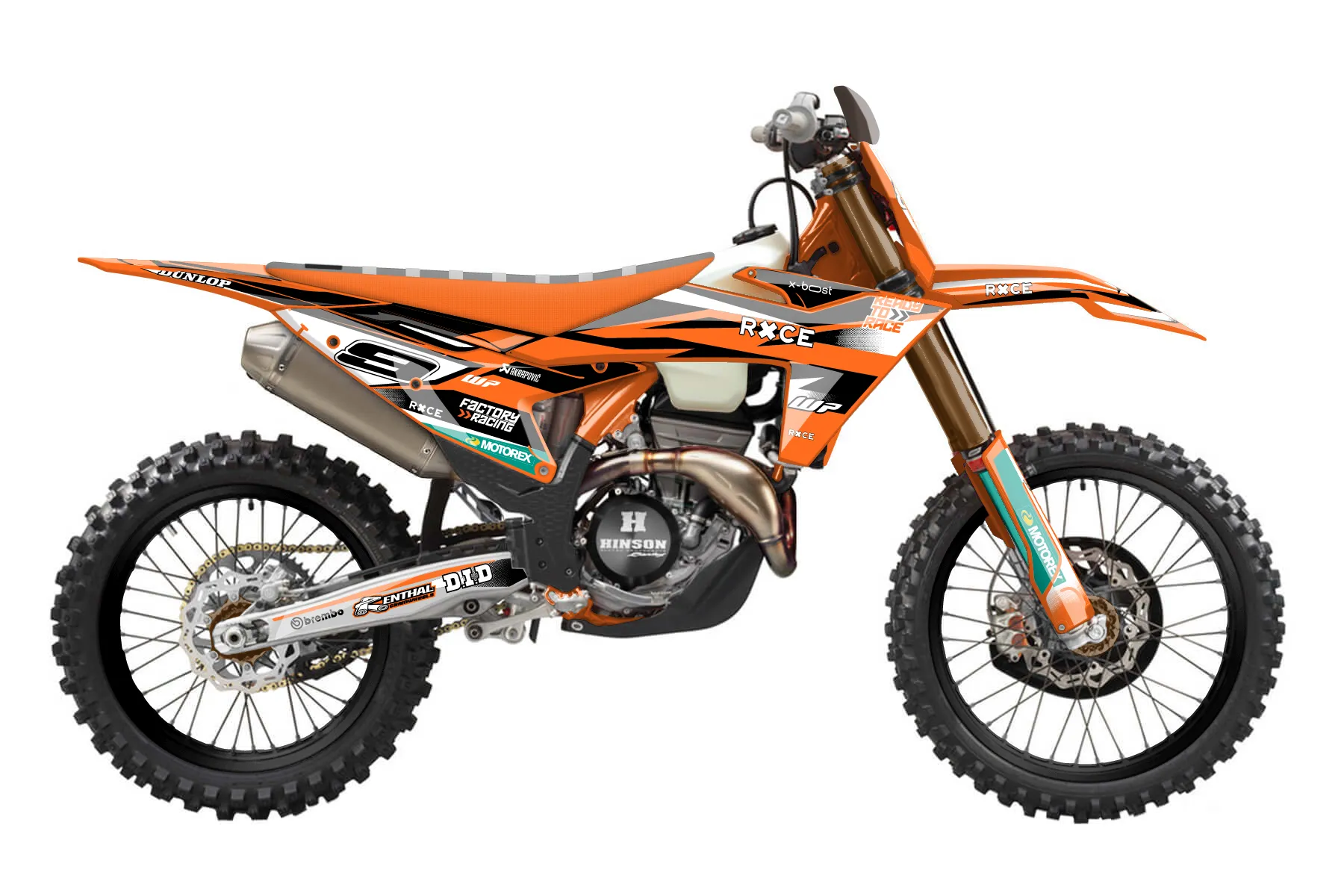 «TBT» — готовый комплект графики серии Fusion для KTM Offroad Graphic Kit KTM XC-F 350 2023. В комплекте: графика на бак и боковые облицовки, крылья (переднее и заднее), передний щиток, номерные таблички, защита вилки. Материал: ПВХ-винил 80 мкр с холодной ламинацией 300 мкр, общая толщина 380 мкр; покрытие глянцевое или матовое на выбор. Устойчив к UV-излучению, воде, бензину и мойке высокого давления. Клей акриловый на сольвентной основе — постоянный, для гибких пластиков. На простых поверхностях монтируется без нагрева; для сложных изгибов рекомендуем фен. Этот пресет можно заказать как есть или взять за основу в конструкторе: поменять цвета, добавить стартовый номер и свой бренд. Производство — 3–5 рабочих дней, доставка по России СДЭКом или Почтой, по СНГ — курьерскими службами.