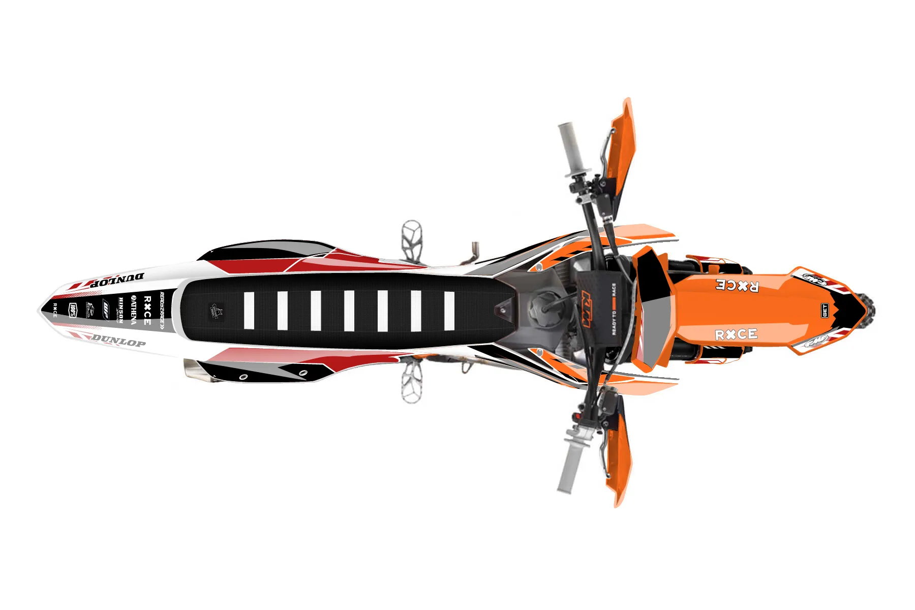 «Dude» — готовый комплект графики серии Maverick для KTM Offroad Graphic Kit KTM XC-F 350 2023. В комплекте: графика на бак и боковые облицовки, крылья (переднее и заднее), передний щиток, номерные таблички, защита вилки. Материал: ПВХ-винил 80 мкр с холодной ламинацией 300 мкр, общая толщина 380 мкр; покрытие глянцевое или матовое на выбор. Устойчив к UV-излучению, воде, бензину и мойке высокого давления. Клей акриловый на сольвентной основе — постоянный, для гибких пластиков. На простых поверхностях монтируется без нагрева; для сложных изгибов рекомендуем фен. Этот пресет можно заказать как есть или взять за основу в конструкторе: поменять цвета, добавить стартовый номер и свой бренд. Производство — 3–5 рабочих дней, доставка по России СДЭКом или Почтой, по СНГ — курьерскими службами.