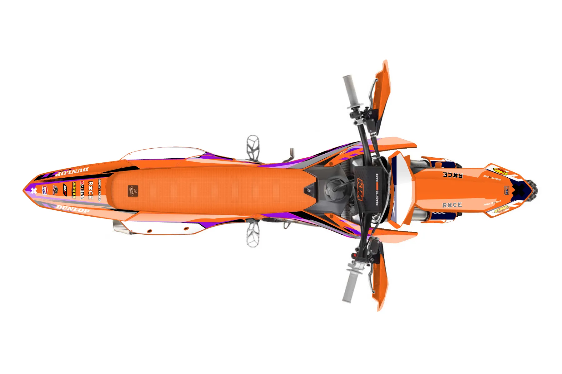 «Purple 350» — готовый комплект графики серии Maverick для KTM Offroad Graphic Kit KTM XC-F 350 2023. В комплекте: графика на бак и боковые облицовки, крылья (переднее и заднее), передний щиток, номерные таблички, защита вилки. Материал: ПВХ-винил 80 мкр с холодной ламинацией 300 мкр, общая толщина 380 мкр; покрытие глянцевое или матовое на выбор. Устойчив к UV-излучению, воде, бензину и мойке высокого давления. Клей акриловый на сольвентной основе — постоянный, для гибких пластиков. На простых поверхностях монтируется без нагрева; для сложных изгибов рекомендуем фен. Этот пресет можно заказать как есть или взять за основу в конструкторе: поменять цвета, добавить стартовый номер и свой бренд. Производство — 3–5 рабочих дней, доставка по России СДЭКом или Почтой, по СНГ — курьерскими службами.