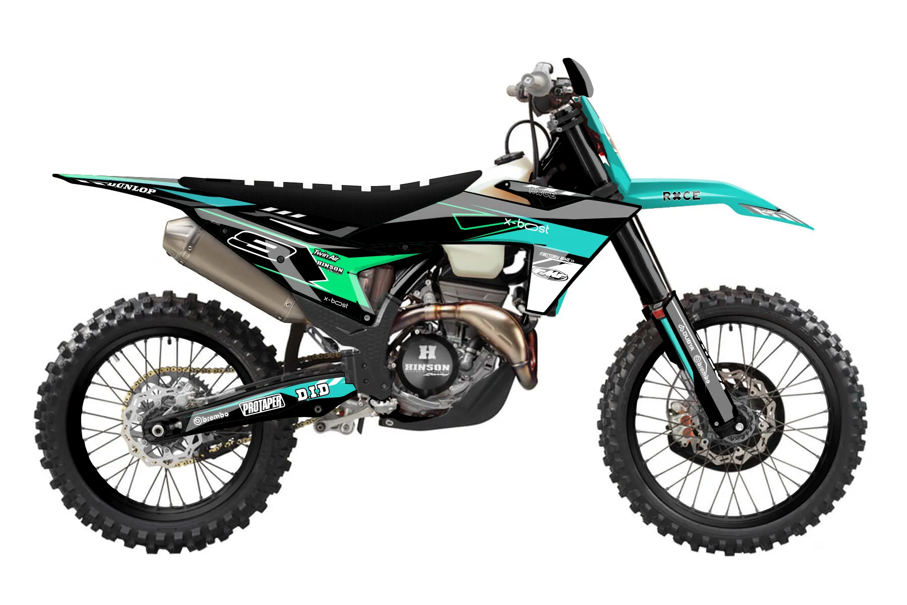 «Refuse» — готовый комплект графики серии Maverick для KTM Offroad Graphic Kit KTM XC-F 350 2023. В комплекте: графика на бак и боковые облицовки, крылья (переднее и заднее), передний щиток, номерные таблички, защита вилки. Материал: ПВХ-винил 80 мкр с холодной ламинацией 300 мкр, общая толщина 380 мкр; покрытие глянцевое или матовое на выбор. Устойчив к UV-излучению, воде, бензину и мойке высокого давления. Клей акриловый на сольвентной основе — постоянный, для гибких пластиков. На простых поверхностях монтируется без нагрева; для сложных изгибов рекомендуем фен. Этот пресет можно заказать как есть или взять за основу в конструкторе: поменять цвета, добавить стартовый номер и свой бренд. Производство — 3–5 рабочих дней, доставка по России СДЭКом или Почтой, по СНГ — курьерскими службами.