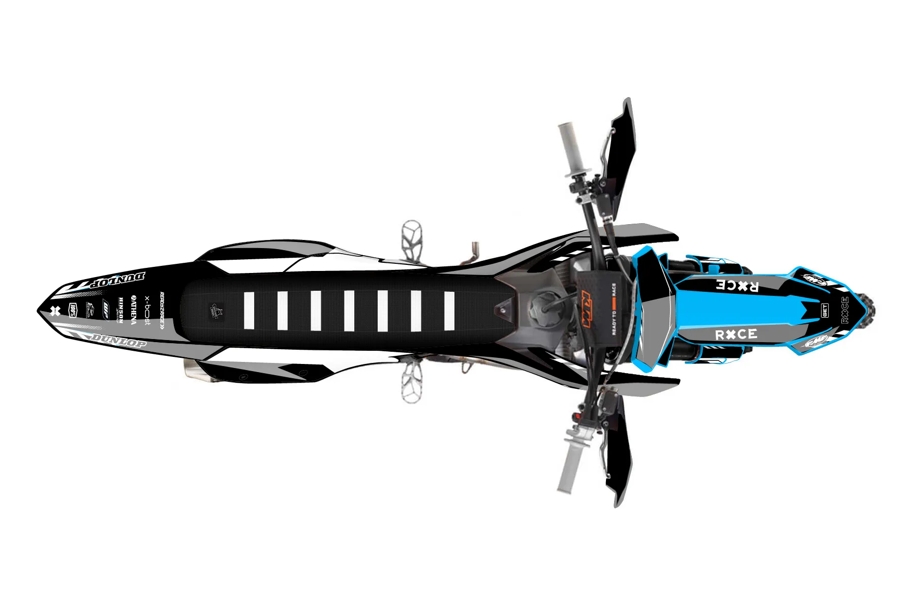 «Swirl» — готовый комплект графики серии Maverick для KTM Offroad Graphic Kit KTM XC-F 350 2023. В комплекте: графика на бак и боковые облицовки, крылья (переднее и заднее), передний щиток, номерные таблички, защита вилки. Материал: ПВХ-винил 80 мкр с холодной ламинацией 300 мкр, общая толщина 380 мкр; покрытие глянцевое или матовое на выбор. Устойчив к UV-излучению, воде, бензину и мойке высокого давления. Клей акриловый на сольвентной основе — постоянный, для гибких пластиков. На простых поверхностях монтируется без нагрева; для сложных изгибов рекомендуем фен. Этот пресет можно заказать как есть или взять за основу в конструкторе: поменять цвета, добавить стартовый номер и свой бренд. Производство — 3–5 рабочих дней, доставка по России СДЭКом или Почтой, по СНГ — курьерскими службами.