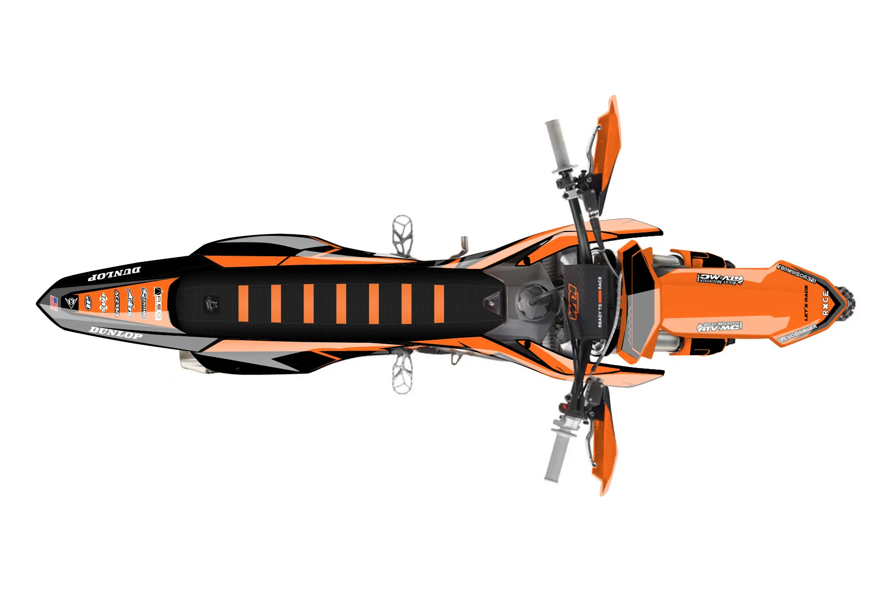 «350 ogb complete» — готовый комплект графики серии Staple для KTM Offroad Graphic Kit KTM XC-F 350 2023. В комплекте: графика на бак и боковые облицовки, крылья (переднее и заднее), передний щиток, номерные таблички, защита вилки. Материал: ПВХ-винил 80 мкр с холодной ламинацией 300 мкр, общая толщина 380 мкр; покрытие глянцевое или матовое на выбор. Устойчив к UV-излучению, воде, бензину и мойке высокого давления. Клей акриловый на сольвентной основе — постоянный, для гибких пластиков. На простых поверхностях монтируется без нагрева; для сложных изгибов рекомендуем фен. Этот пресет можно заказать как есть или взять за основу в конструкторе: поменять цвета, добавить стартовый номер и свой бренд. Производство — 3–5 рабочих дней, доставка по России СДЭКом или Почтой, по СНГ — курьерскими службами.