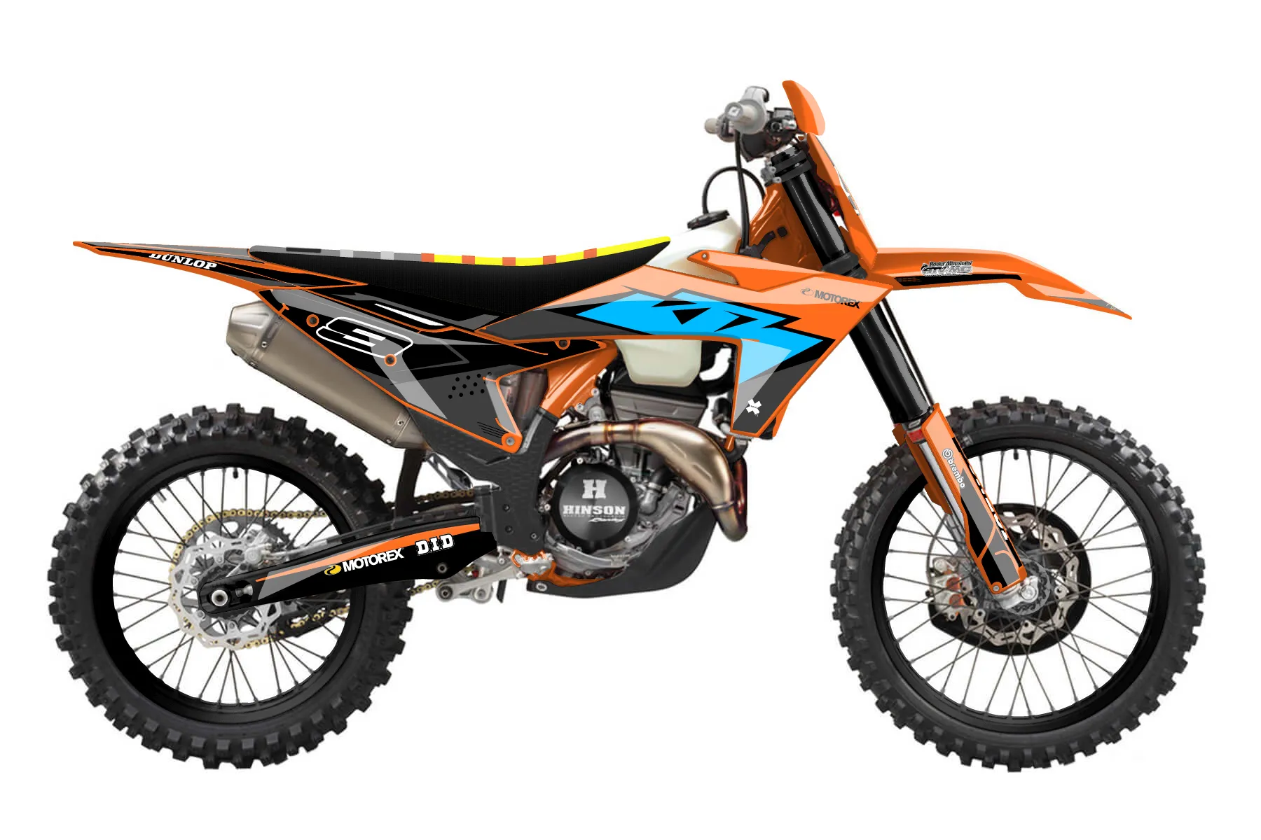 «blue 3-9» — готовый комплект графики серии Staple для KTM Offroad Graphic Kit KTM XC-F 350 2023. В комплекте: графика на бак и боковые облицовки, крылья (переднее и заднее), передний щиток, номерные таблички, защита вилки. Материал: ПВХ-винил 80 мкр с холодной ламинацией 300 мкр, общая толщина 380 мкр; покрытие глянцевое или матовое на выбор. Устойчив к UV-излучению, воде, бензину и мойке высокого давления. Клей акриловый на сольвентной основе — постоянный, для гибких пластиков. На простых поверхностях монтируется без нагрева; для сложных изгибов рекомендуем фен. Этот пресет можно заказать как есть или взять за основу в конструкторе: поменять цвета, добавить стартовый номер и свой бренд. Производство — 3–5 рабочих дней, доставка по России СДЭКом или Почтой, по СНГ — курьерскими службами.