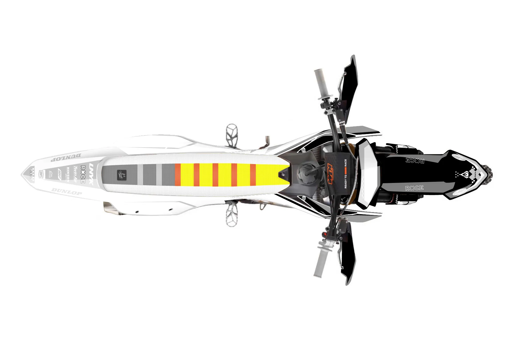«Charge» — готовый комплект графики серии Staple для KTM Offroad Graphic Kit KTM XC-F 350 2023. В комплекте: графика на бак и боковые облицовки, крылья (переднее и заднее), передний щиток, номерные таблички, защита вилки. Материал: ПВХ-винил 80 мкр с холодной ламинацией 300 мкр, общая толщина 380 мкр; покрытие глянцевое или матовое на выбор. Устойчив к UV-излучению, воде, бензину и мойке высокого давления. Клей акриловый на сольвентной основе — постоянный, для гибких пластиков. На простых поверхностях монтируется без нагрева; для сложных изгибов рекомендуем фен. Этот пресет можно заказать как есть или взять за основу в конструкторе: поменять цвета, добавить стартовый номер и свой бренд. Производство — 3–5 рабочих дней, доставка по России СДЭКом или Почтой, по СНГ — курьерскими службами.