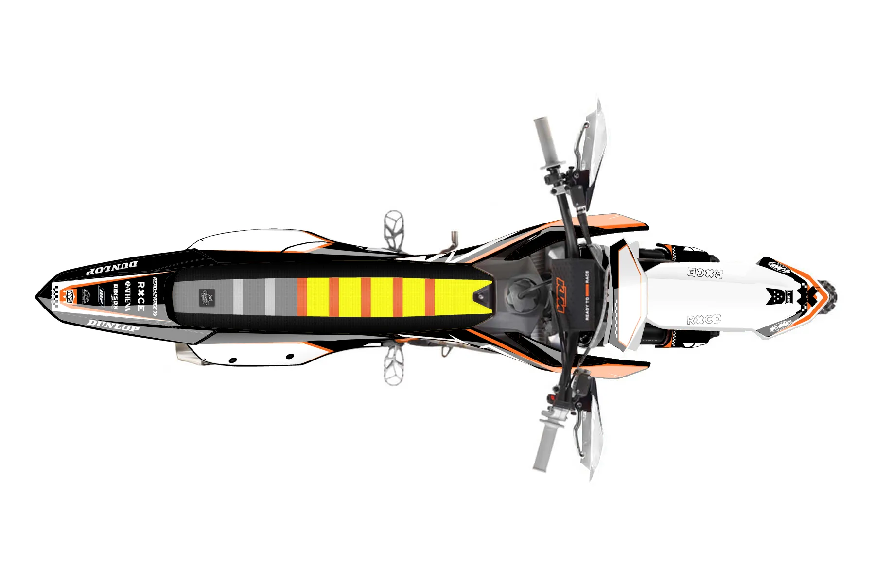 «Chef» — готовый комплект графики серии Staple для KTM Offroad Graphic Kit KTM XC-F 350 2023. В комплекте: графика на бак и боковые облицовки, крылья (переднее и заднее), передний щиток, номерные таблички, защита вилки. Материал: ПВХ-винил 80 мкр с холодной ламинацией 300 мкр, общая толщина 380 мкр; покрытие глянцевое или матовое на выбор. Устойчив к UV-излучению, воде, бензину и мойке высокого давления. Клей акриловый на сольвентной основе — постоянный, для гибких пластиков. На простых поверхностях монтируется без нагрева; для сложных изгибов рекомендуем фен. Этот пресет можно заказать как есть или взять за основу в конструкторе: поменять цвета, добавить стартовый номер и свой бренд. Производство — 3–5 рабочих дней, доставка по России СДЭКом или Почтой, по СНГ — курьерскими службами.