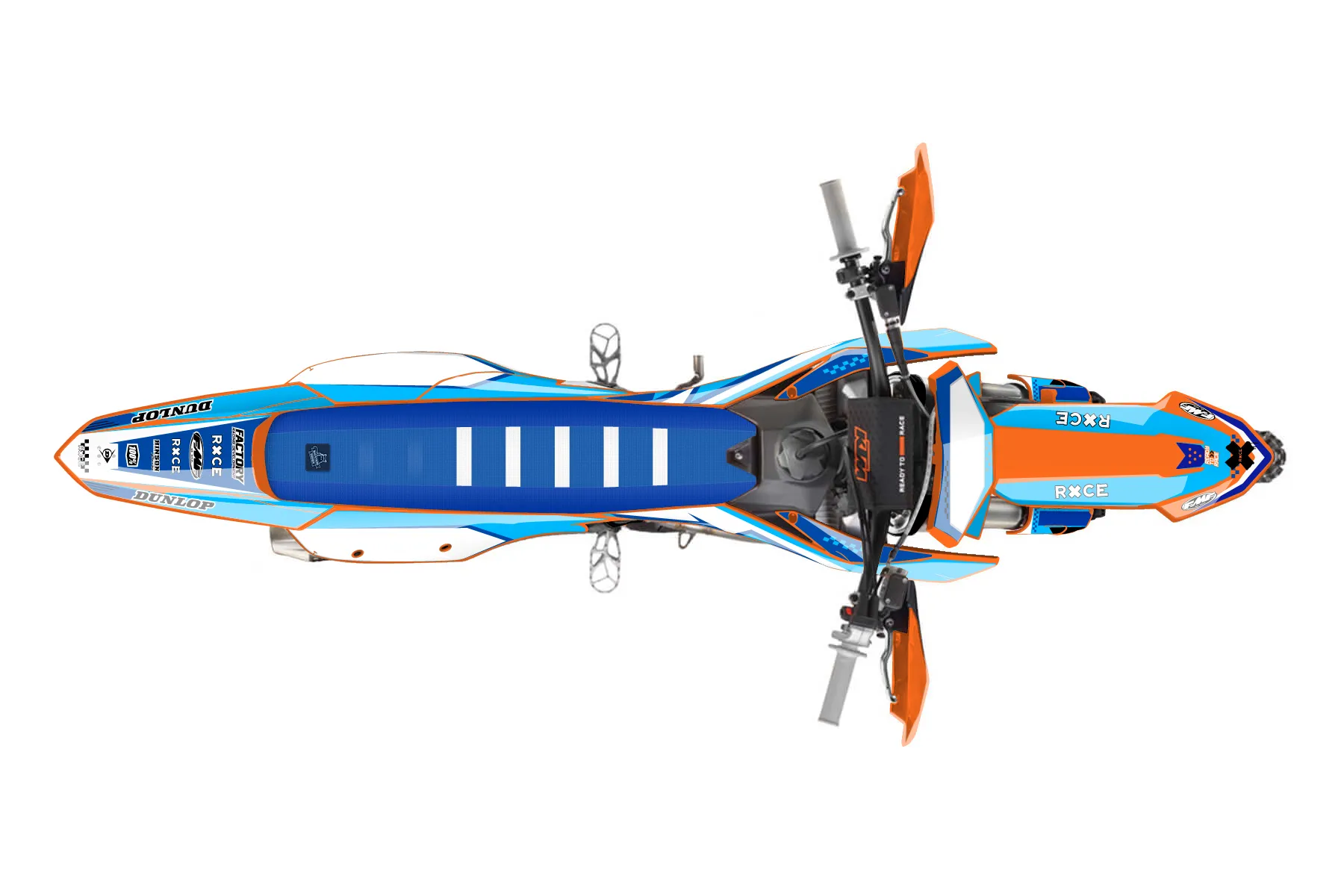 «CHRISTIAN» — готовый комплект графики серии Staple для KTM Offroad Graphic Kit KTM XC-F 350 2023. В комплекте: графика на бак и боковые облицовки, крылья (переднее и заднее), передний щиток, номерные таблички, защита вилки. Материал: ПВХ-винил 80 мкр с холодной ламинацией 300 мкр, общая толщина 380 мкр; покрытие глянцевое или матовое на выбор. Устойчив к UV-излучению, воде, бензину и мойке высокого давления. Клей акриловый на сольвентной основе — постоянный, для гибких пластиков. На простых поверхностях монтируется без нагрева; для сложных изгибов рекомендуем фен. Этот пресет можно заказать как есть или взять за основу в конструкторе: поменять цвета, добавить стартовый номер и свой бренд. Производство — 3–5 рабочих дней, доставка по России СДЭКом или Почтой, по СНГ — курьерскими службами.