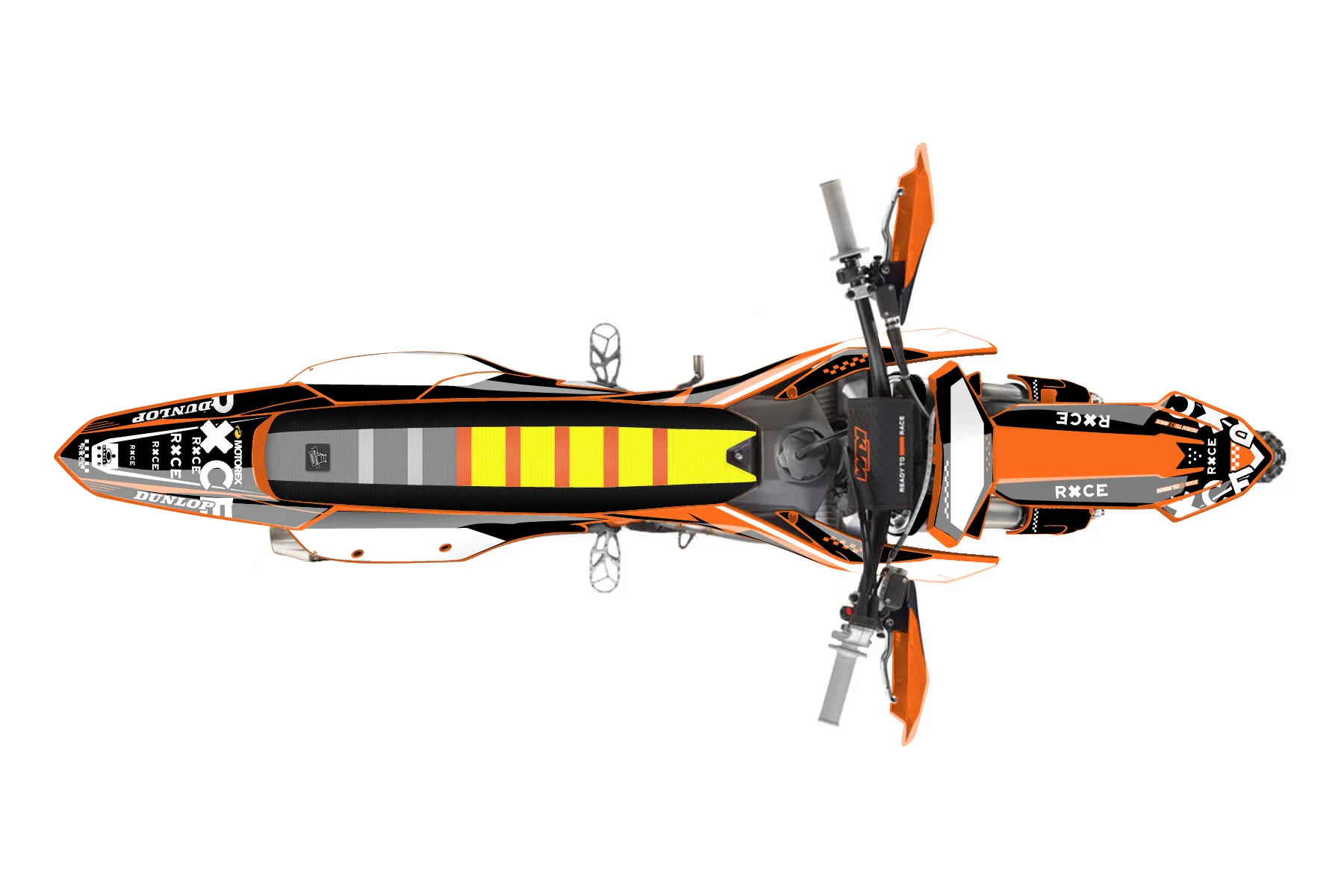 «CustomDesign» — готовый комплект графики серии Staple для KTM Offroad Graphic Kit KTM XC-F 350 2023. В комплекте: графика на бак и боковые облицовки, крылья (переднее и заднее), передний щиток, номерные таблички, защита вилки. Материал: ПВХ-винил 80 мкр с холодной ламинацией 300 мкр, общая толщина 380 мкр; покрытие глянцевое или матовое на выбор. Устойчив к UV-излучению, воде, бензину и мойке высокого давления. Клей акриловый на сольвентной основе — постоянный, для гибких пластиков. На простых поверхностях монтируется без нагрева; для сложных изгибов рекомендуем фен. Этот пресет можно заказать как есть или взять за основу в конструкторе: поменять цвета, добавить стартовый номер и свой бренд. Производство — 3–5 рабочих дней, доставка по России СДЭКом или Почтой, по СНГ — курьерскими службами.