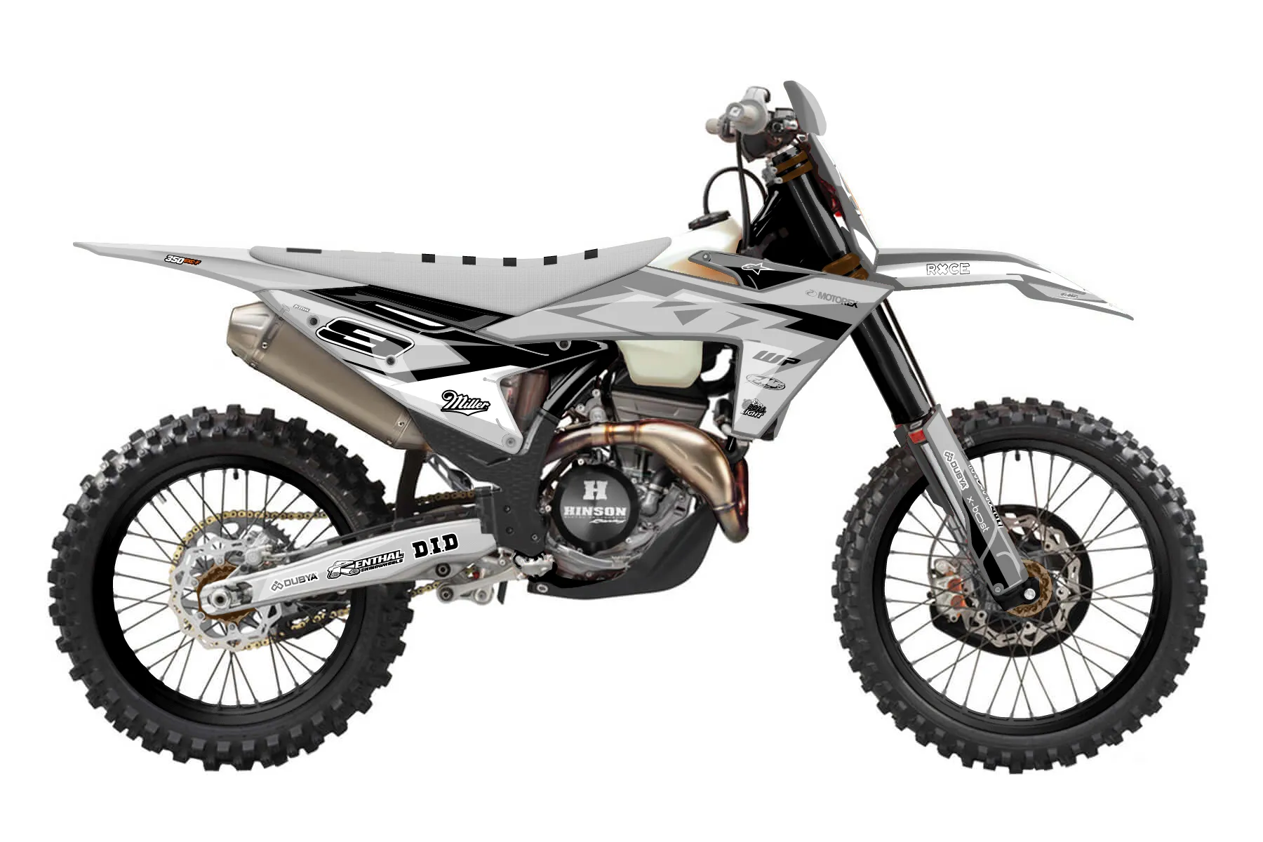 «CustomDesign» — готовый комплект графики серии Staple для KTM Offroad Graphic Kit KTM XC-F 350 2023. В комплекте: графика на бак и боковые облицовки, крылья (переднее и заднее), передний щиток, номерные таблички, защита вилки. Материал: ПВХ-винил 80 мкр с холодной ламинацией 300 мкр, общая толщина 380 мкр; покрытие глянцевое или матовое на выбор. Устойчив к UV-излучению, воде, бензину и мойке высокого давления. Клей акриловый на сольвентной основе — постоянный, для гибких пластиков. На простых поверхностях монтируется без нагрева; для сложных изгибов рекомендуем фен. Этот пресет можно заказать как есть или взять за основу в конструкторе: поменять цвета, добавить стартовый номер и свой бренд. Производство — 3–5 рабочих дней, доставка по России СДЭКом или Почтой, по СНГ — курьерскими службами.